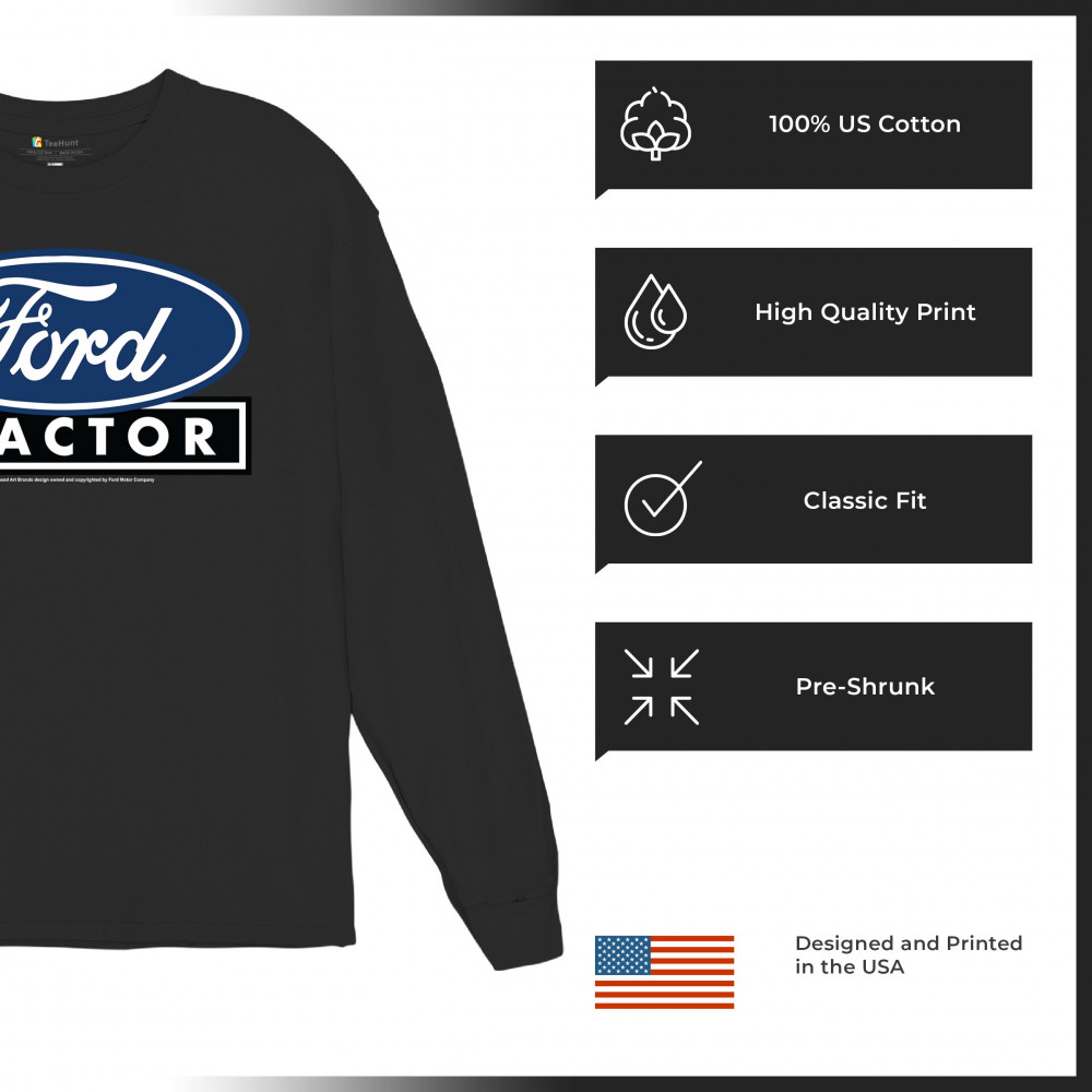 FORD TRACTOR LOGO BLUE long sleeve t-shirt vintage farm rustic classic retro black