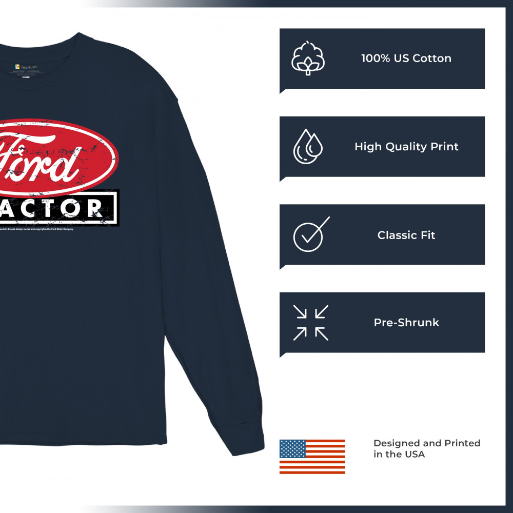 Classic Ford Tractor logo design in rustic red. A vintage tribute for farmers, collectors, and fans of agricultural heritage.