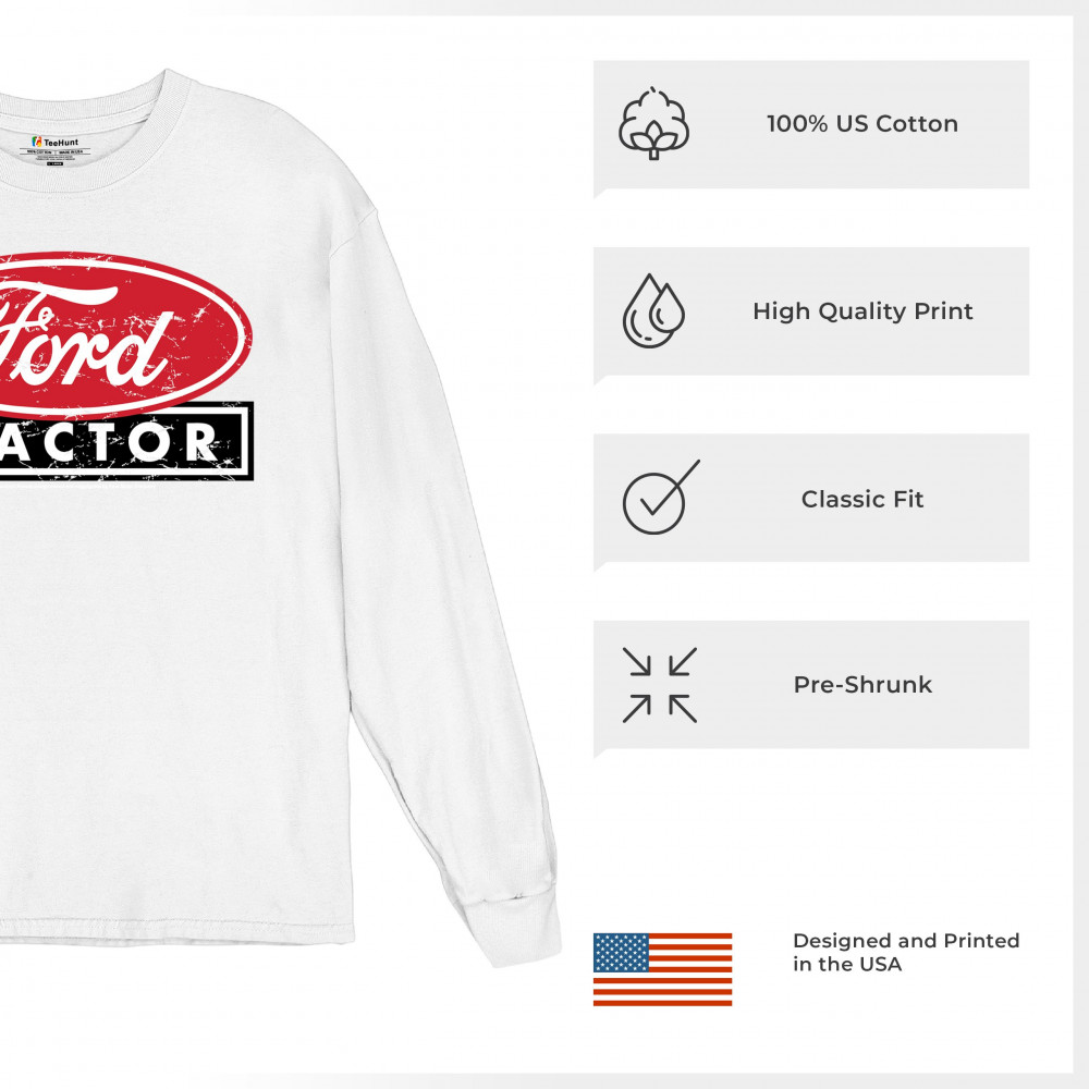 Classic Ford Tractor logo design in rustic red. A vintage tribute for farmers, collectors, and fans of agricultural heritage.