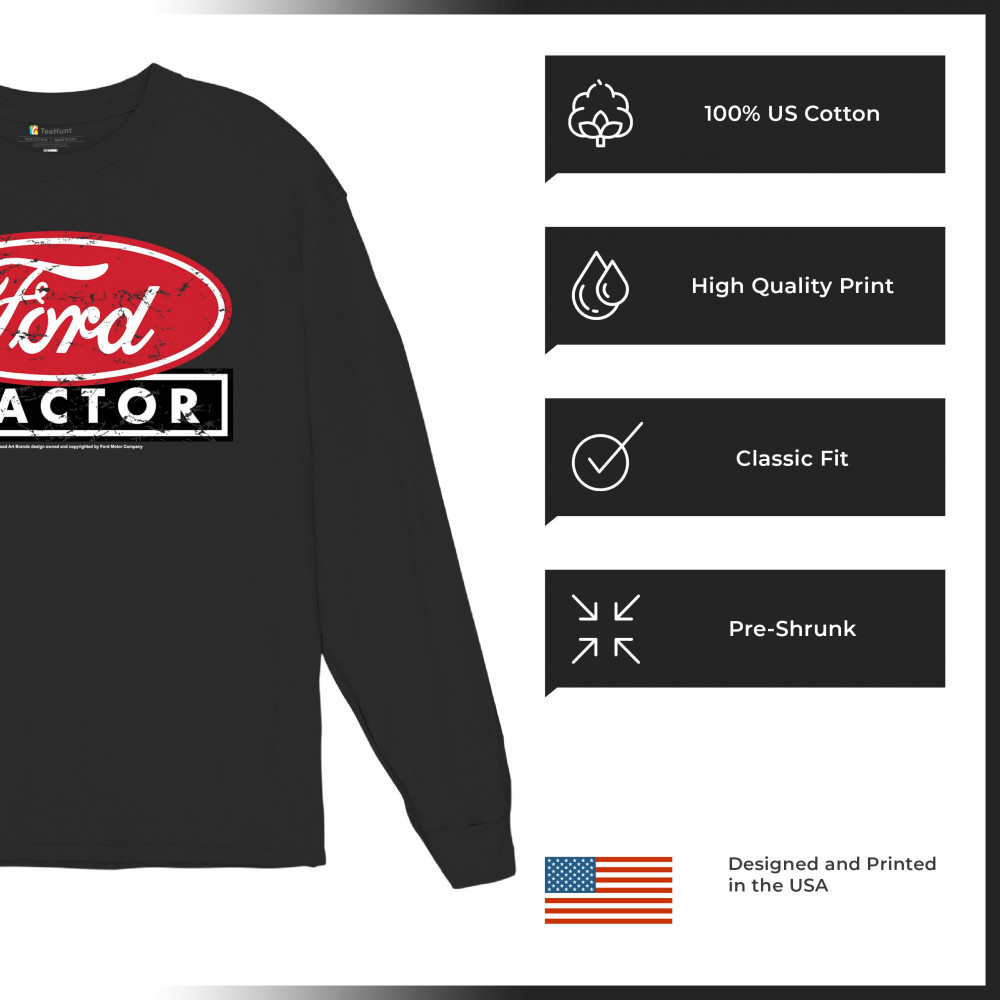 Classic Ford Tractor logo design in rustic red. A vintage tribute for farmers, collectors, and fans of agricultural heritage.