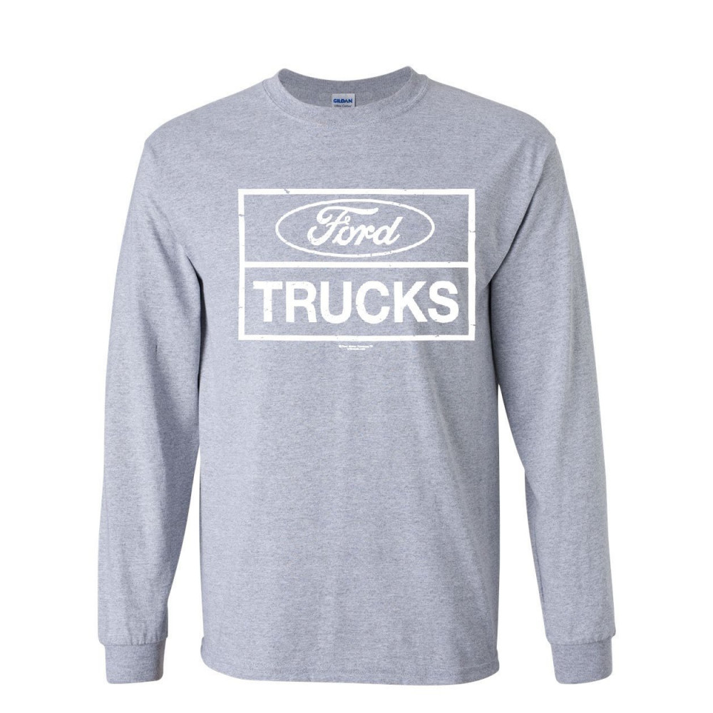 DISTRESSED FORD TRUCKS long sleeve t-shirt f150 american pick up tee gray