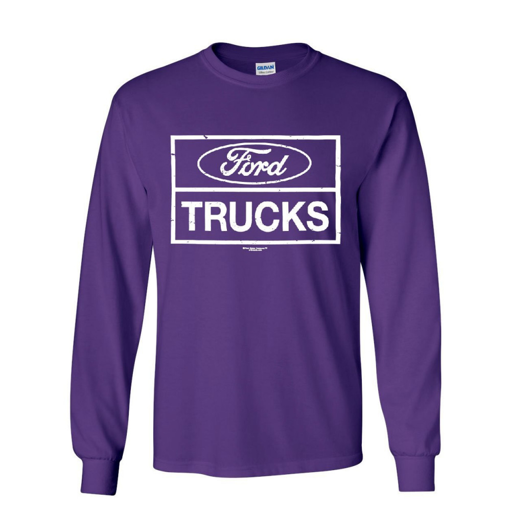 DISTRESSED FORD TRUCKS long sleeve t-shirt f150 american pick up tee purple