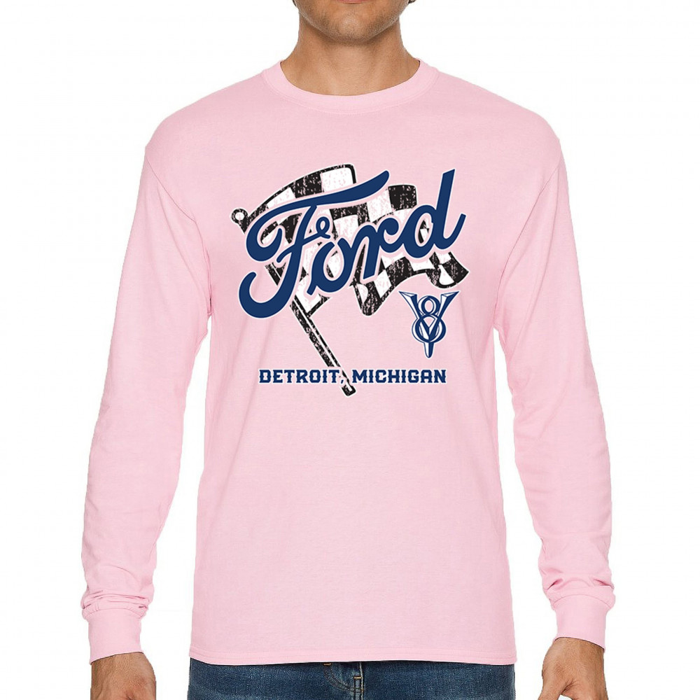 Honor Detroit, Michigan’s Ford legacy with this officially licensed design featuring a checkered flag and bold V8 emblem, perfect for muscle car fans and classic car lovers.