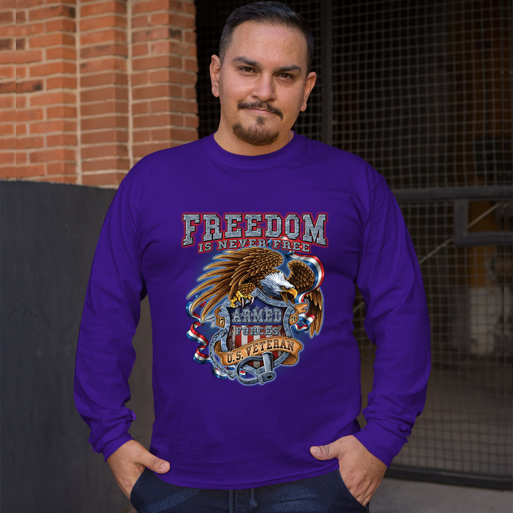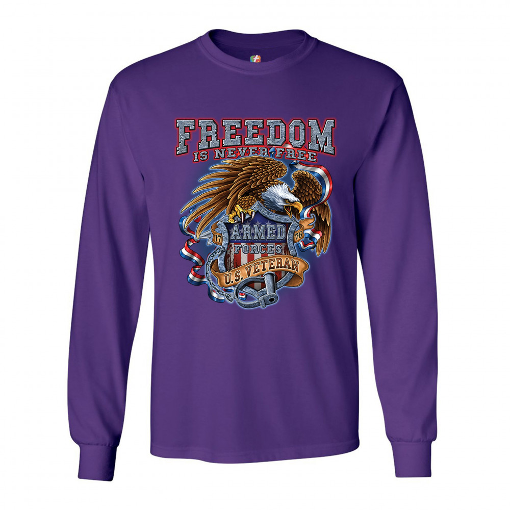 FREEDOM IS NEVER FREE long sleeve t-shirt u.s. veteran armed forces military purple