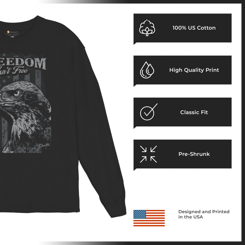 Grayscale eagle design with “Freedom†text. Bold, clean art symbolizing American strength, liberty, and patriotism—perfect for veterans.