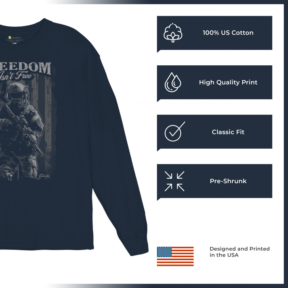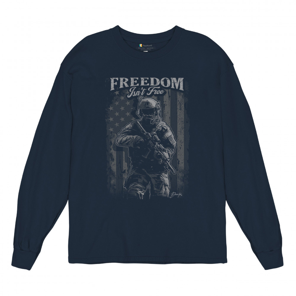 This bold design honors the brave who defend our freedom. Featuring a detailed graphic of an armed soldier against a distressed American flag, it’s perfect for military families, veterans, and patriots alike. Whether you’re wearing it for Memorial Day, Independence Day, or just to show pride, it reflects sacrifice, duty, and American strength.