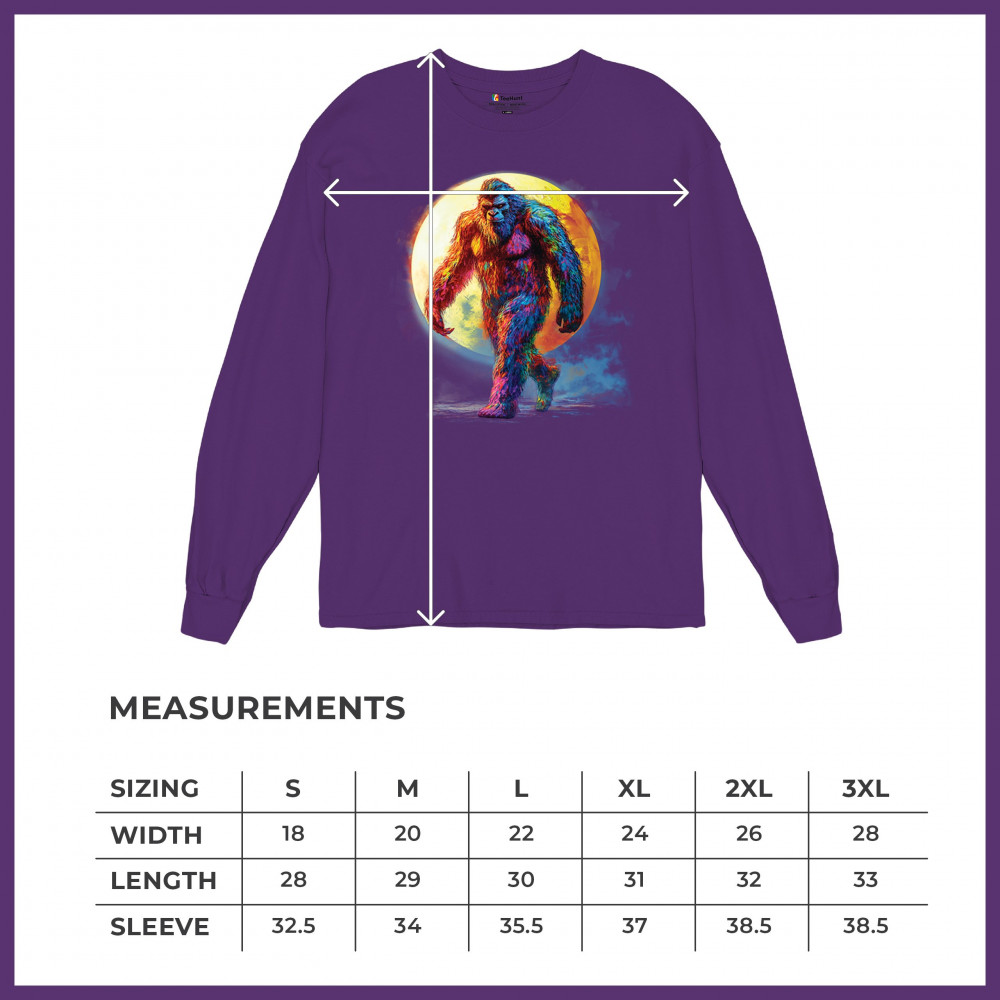 Step into a vivid cryptid dream with this rainbow Bigfoot design. Featuring a multicolor Sasquatch walking past a full moon, it fuses mythical mystery with bold, surreal art. Perfect for festival fans, night hikers, and lovers of the unexplained, this design brings eye-catching style to your wild side.