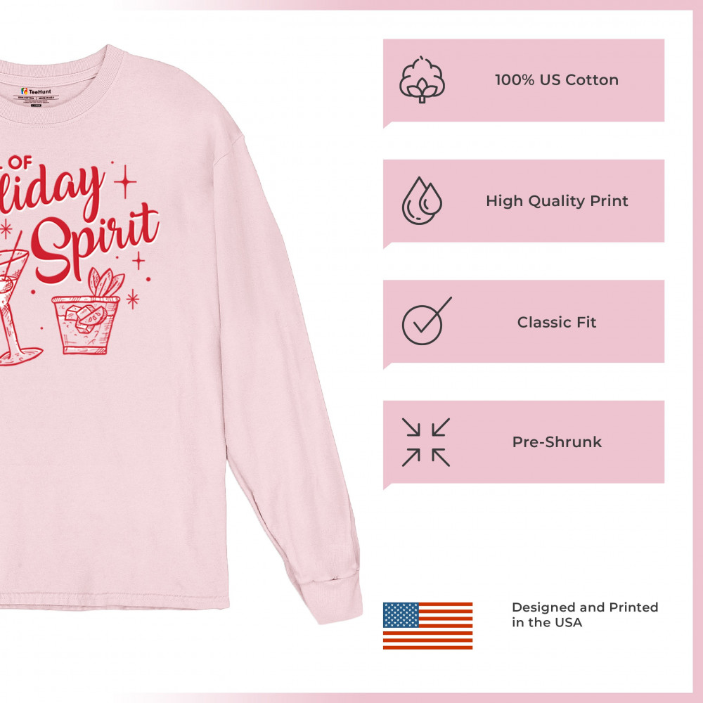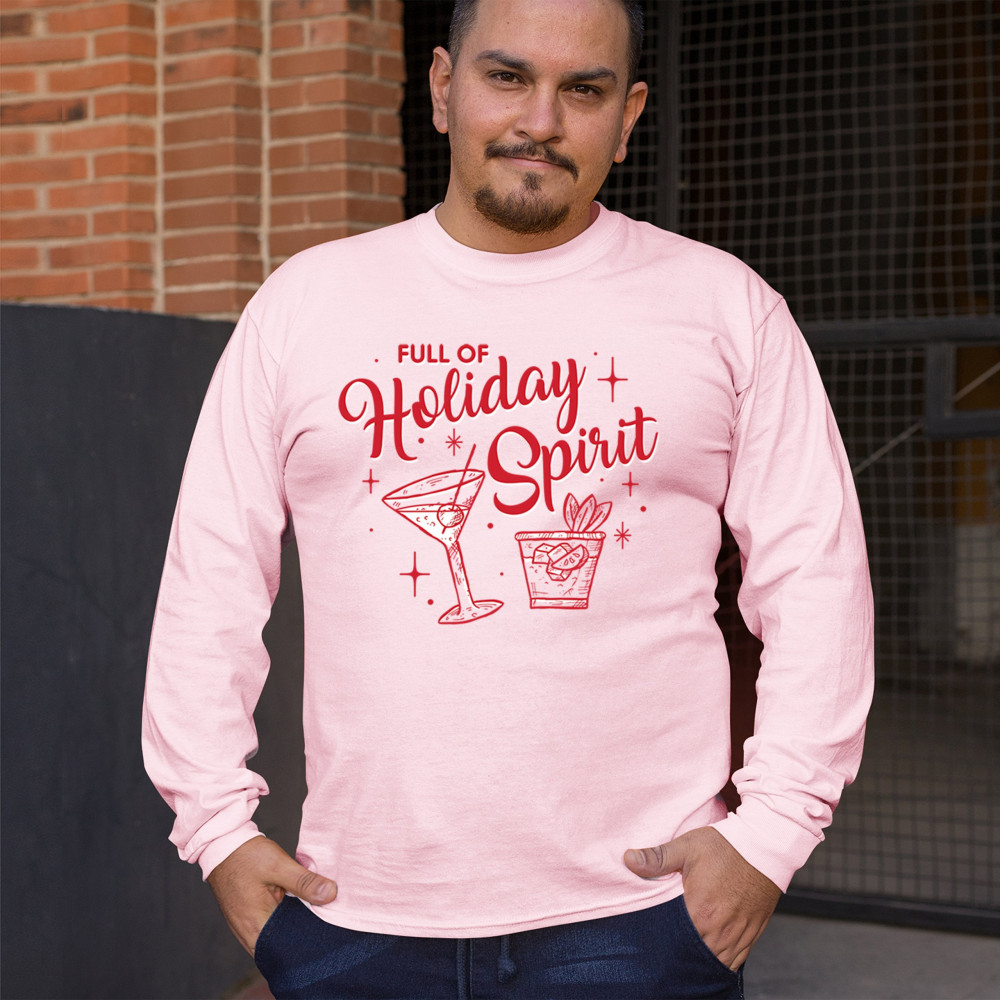 Bring the festive vibes to your holiday season with the "Full of Holiday Spirit" design. This playful print is perfect for office parties, secret Santa gifts, and cozy gatherings, adding a fun and jolly touch to any holiday event. Ideal for matching pajamas, ugly sweater contests, or as a unique present, it’s crafted to spread cheer and humor. From Xmas morning to holiday parties, this design is all about making merry memories with a festive flair.