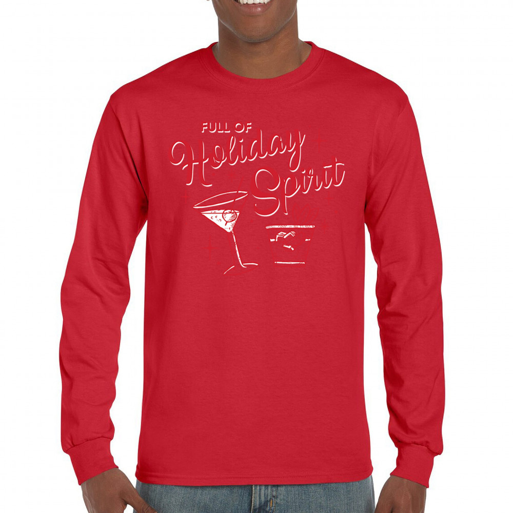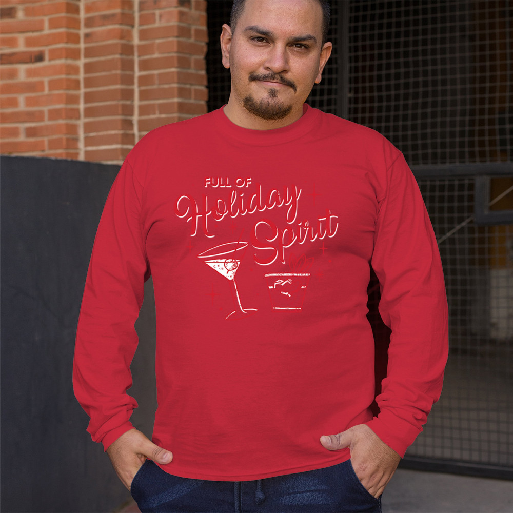 Bring the festive vibes to your holiday season with the "Full of Holiday Spirit" design. This playful print is perfect for office parties, secret Santa gifts, and cozy gatherings, adding a fun and jolly touch to any holiday event. Ideal for matching pajamas, ugly sweater contests, or as a unique present, it’s crafted to spread cheer and humor. From Xmas morning to holiday parties, this design is all about making merry memories with a festive flair.