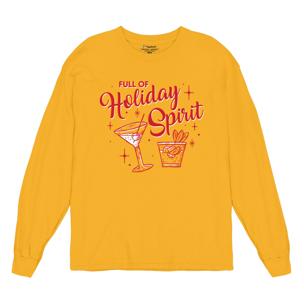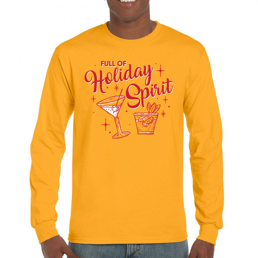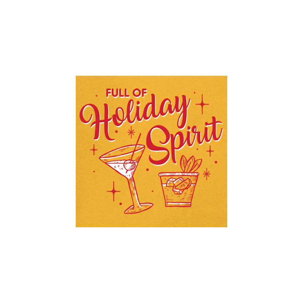 Bring the festive vibes to your holiday season with the "Full of Holiday Spirit" design. This playful print is perfect for office parties, secret Santa gifts, and cozy gatherings, adding a fun and jolly touch to any holiday event. Ideal for matching pajamas, ugly sweater contests, or as a unique present, it’s crafted to spread cheer and humor. From Xmas morning to holiday parties, this design is all about making merry memories with a festive flair.