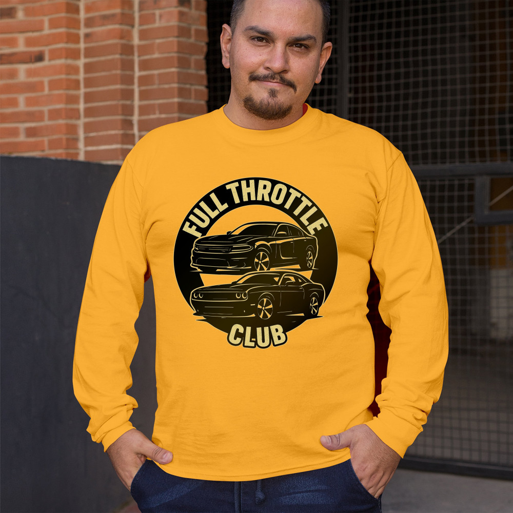 Join the full throttle club with this bold muscle car design featuring two aggressive builds in top form. Crafted for gearheads, racers, and performance fans, it celebrates fast lane life, V8 attitude, and car culture pride. Ideal for meets, drags, or showing off horsepower at its peak.