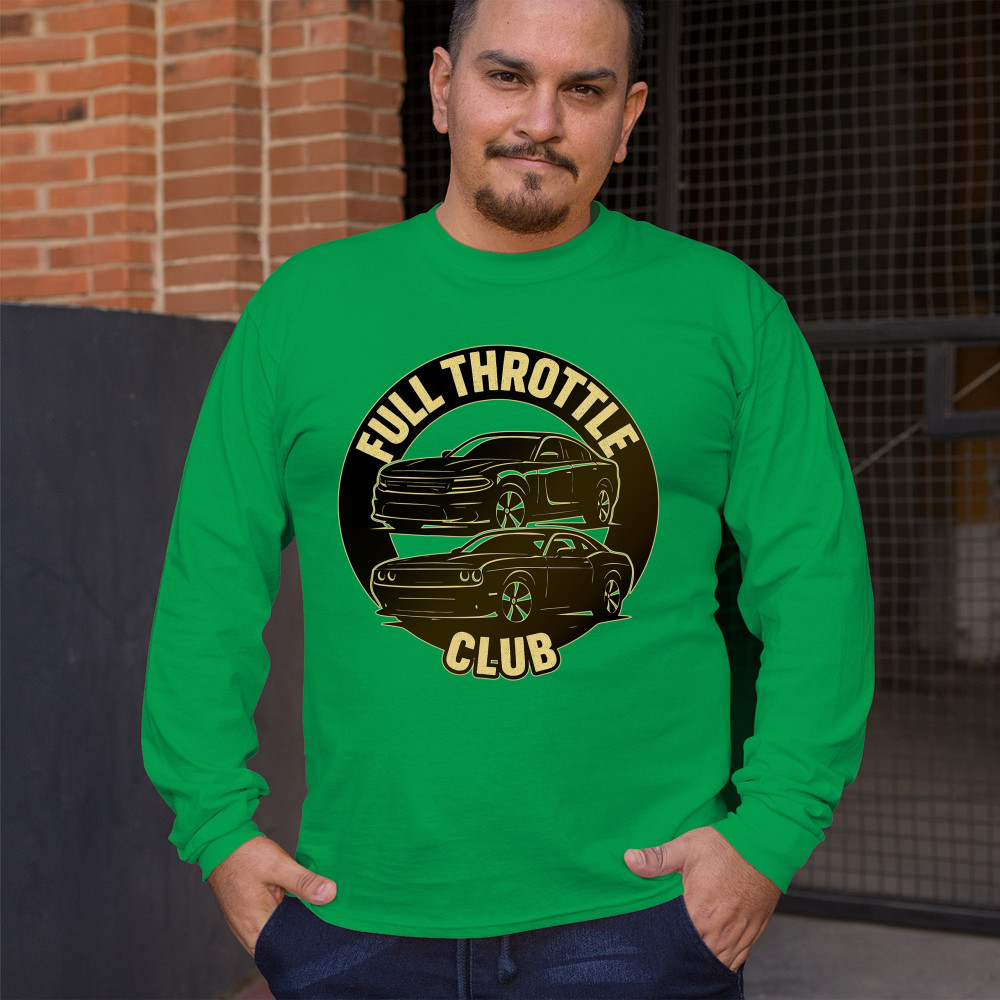 Join the full throttle club with this bold muscle car design featuring two aggressive builds in top form. Crafted for gearheads, racers, and performance fans, it celebrates fast lane life, V8 attitude, and car culture pride. Ideal for meets, drags, or showing off horsepower at its peak.