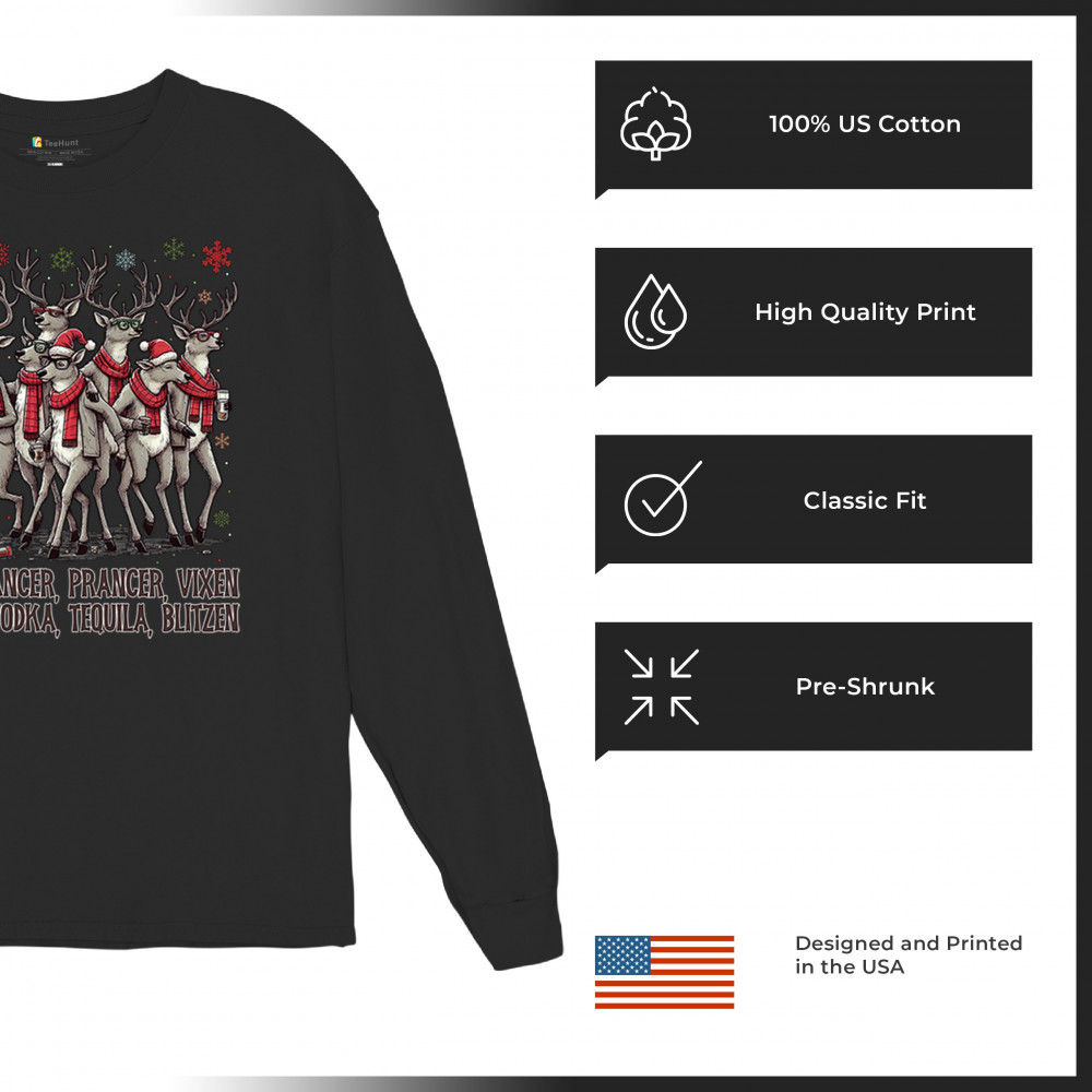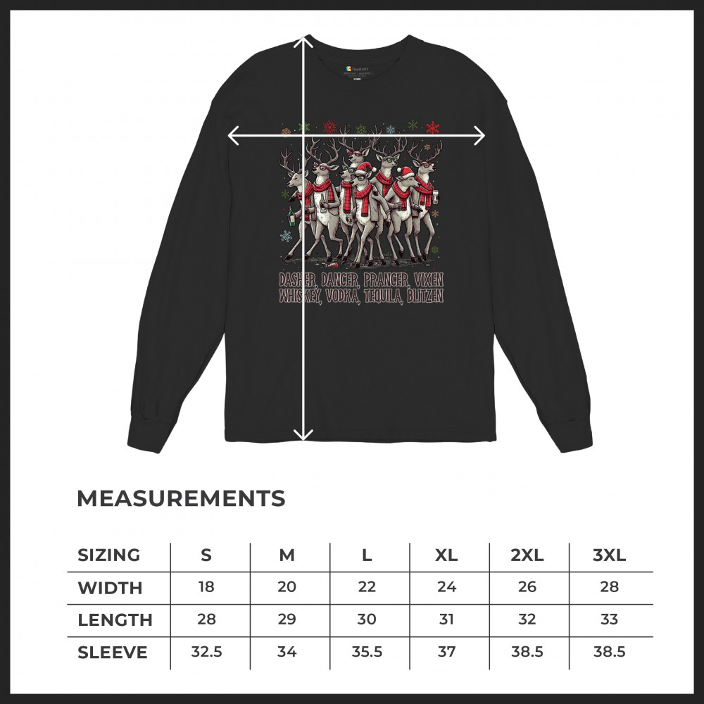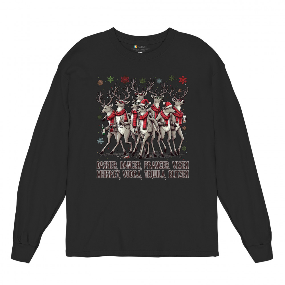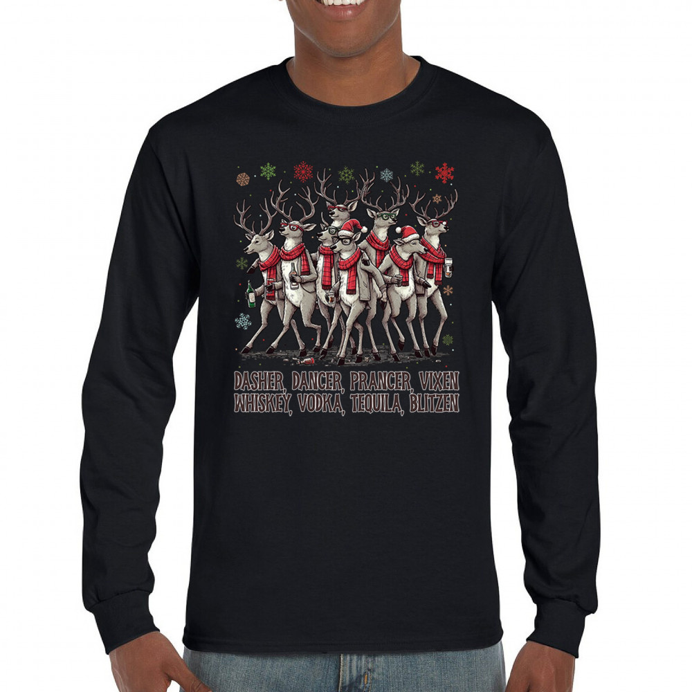 FUNNY DRINKING REINDEER long sleeve t-shirt christmas holiday spirit festive black