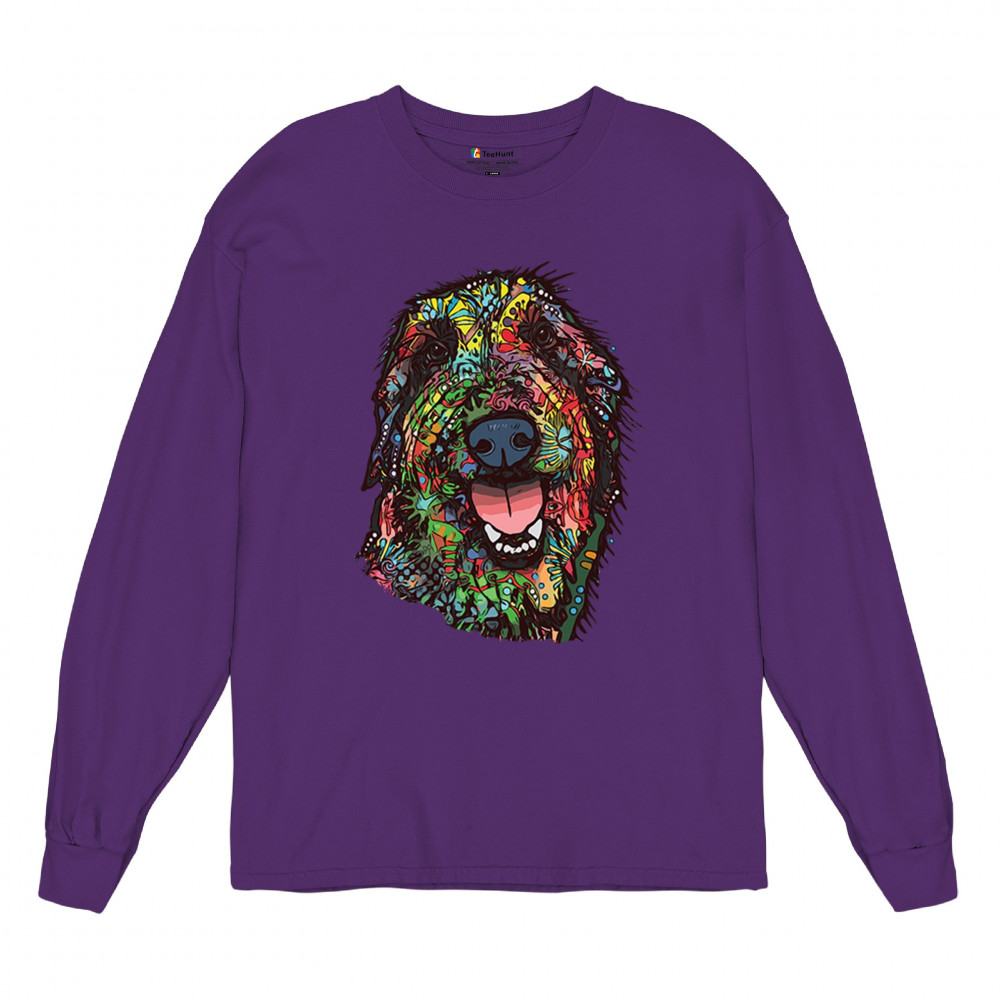 FUNNY FEELING HAPPY DOG FACE long sleeve t-shirt dean russo cheerful pet purple