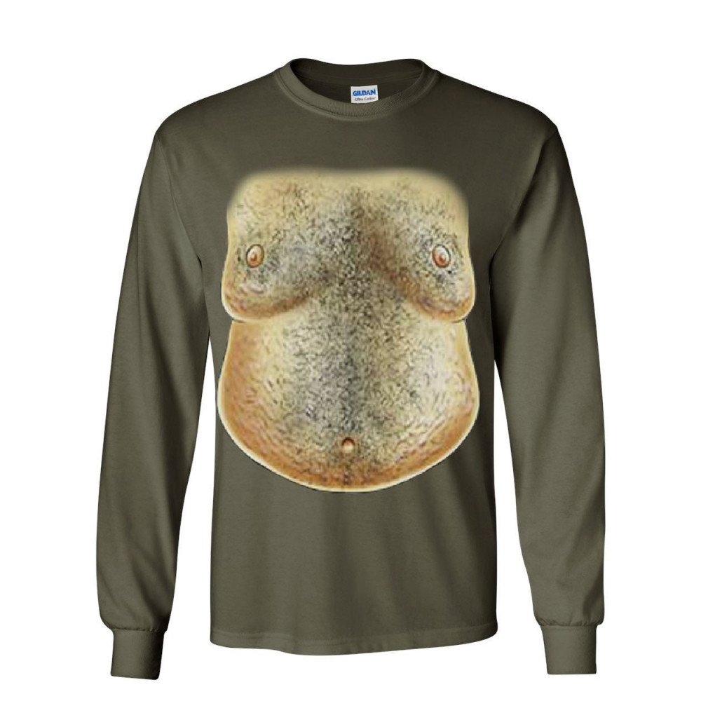 HAIRY BELLY hairy man belly funny long sleeve t-shirt beer belly drinking funny military green