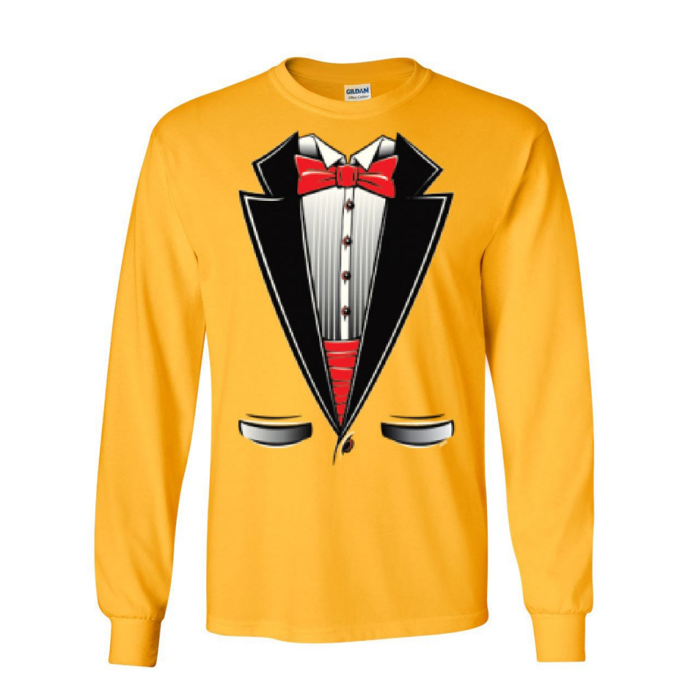 FUNNY TUXEDO BOW TIE long sleeve t-shirt tux wedding party yellow