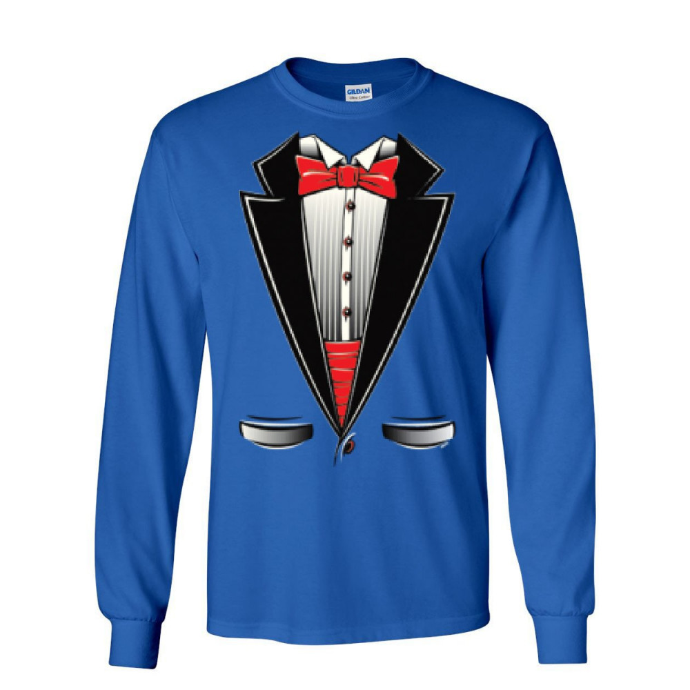 FUNNY TUXEDO BOW TIE long sleeve t-shirt tux wedding party royal blue