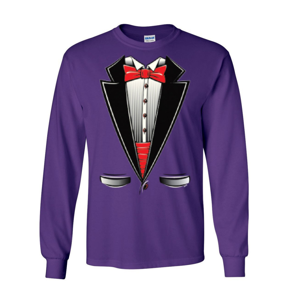 FUNNY TUXEDO BOW TIE long sleeve t-shirt tux wedding party purple