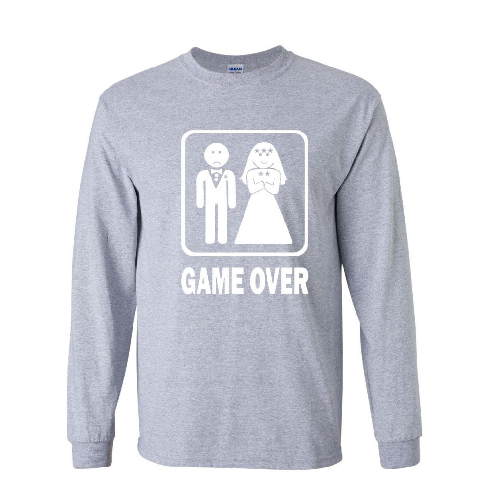 GAME OVER FUNNY long sleeve t-shirt groom and bride wedding gray