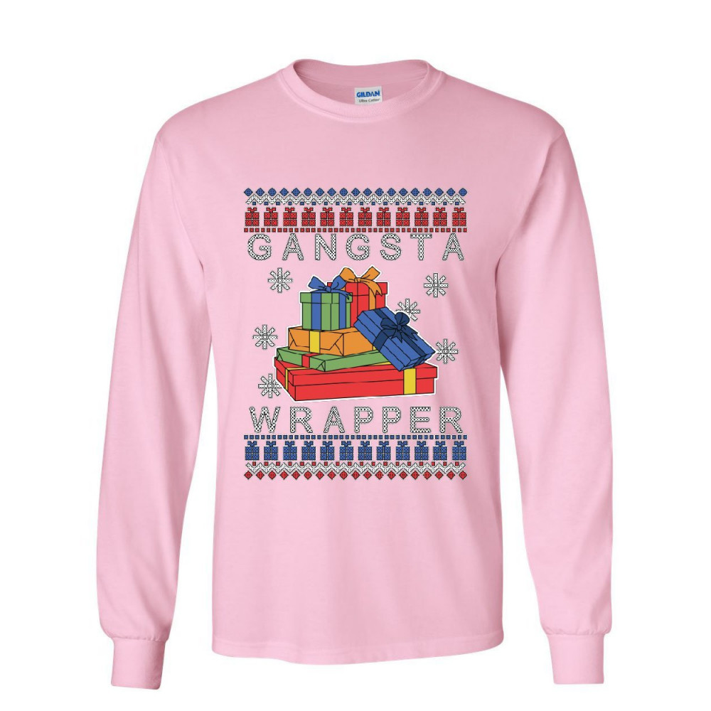 GANGSTA WRAPPER ugly sweater long sleeve t-shirt merry jolly christmas xmas tee light pink