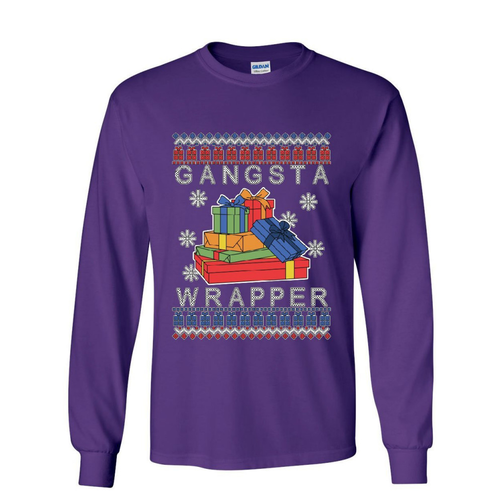 GANGSTA WRAPPER ugly sweater long sleeve t-shirt merry jolly christmas xmas tee purple
