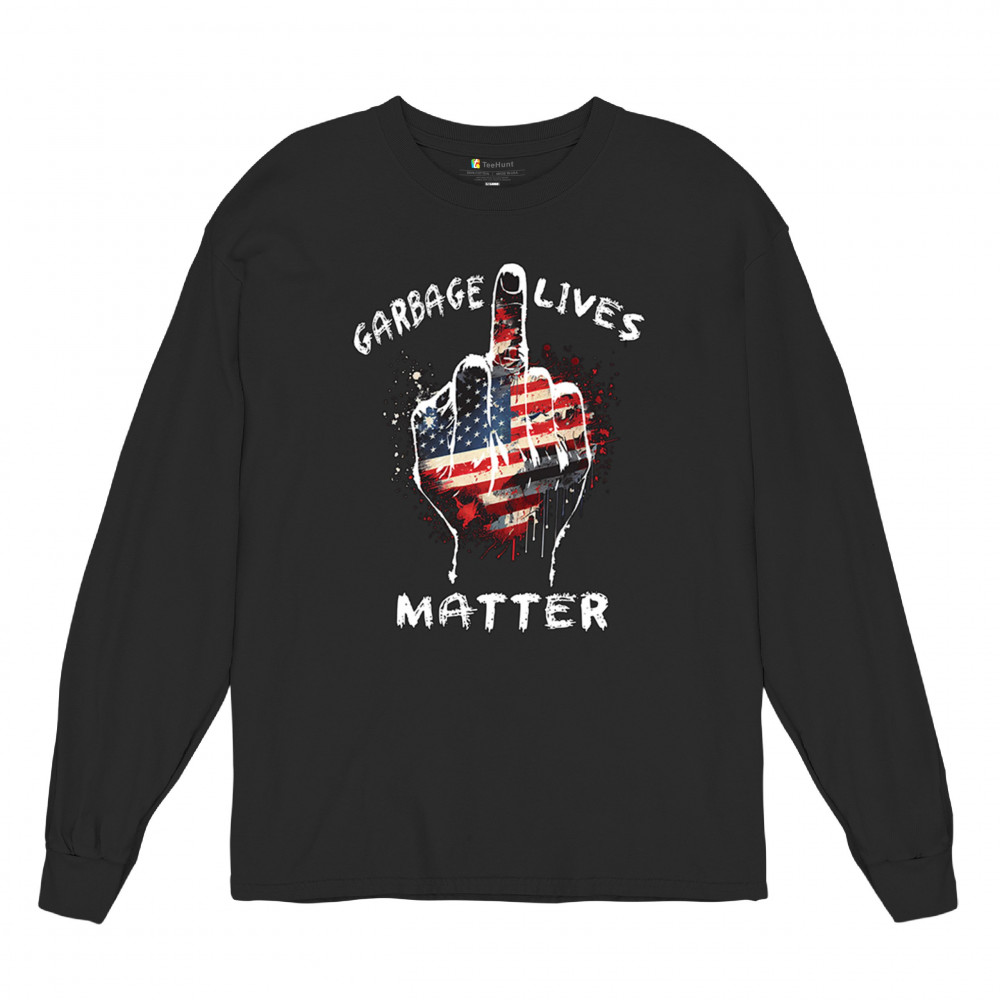 Bold "Garbage Lives Matter" design with the American flag. Perfect for Trump supporters, conservatives, and patriots celebrating resilience and victory.