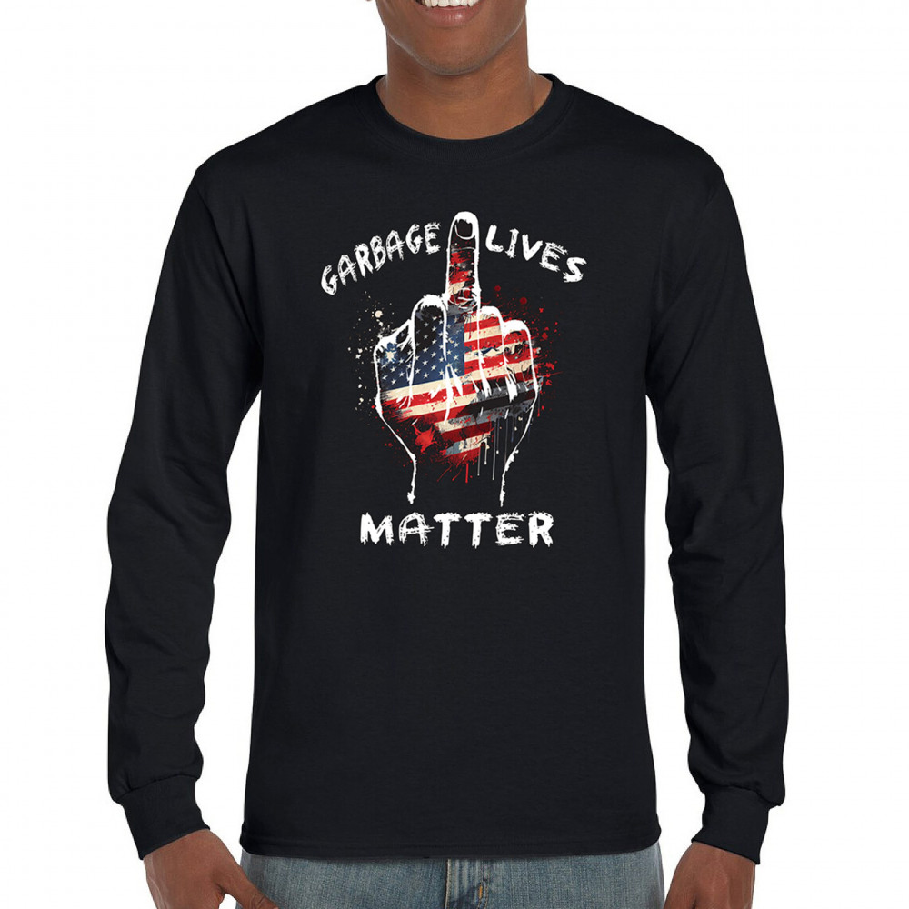 The "Garbage Lives Matter" design is a fearless expression of American values and pride. With the American flag as its centerpiece, this bold and patriotic design speaks volumes to Trump supporters, conservatives, and those who believe in the people's mandate. Join the fight for America First, never surrender, and celebrate the Red Wave movement with this striking statement piece.