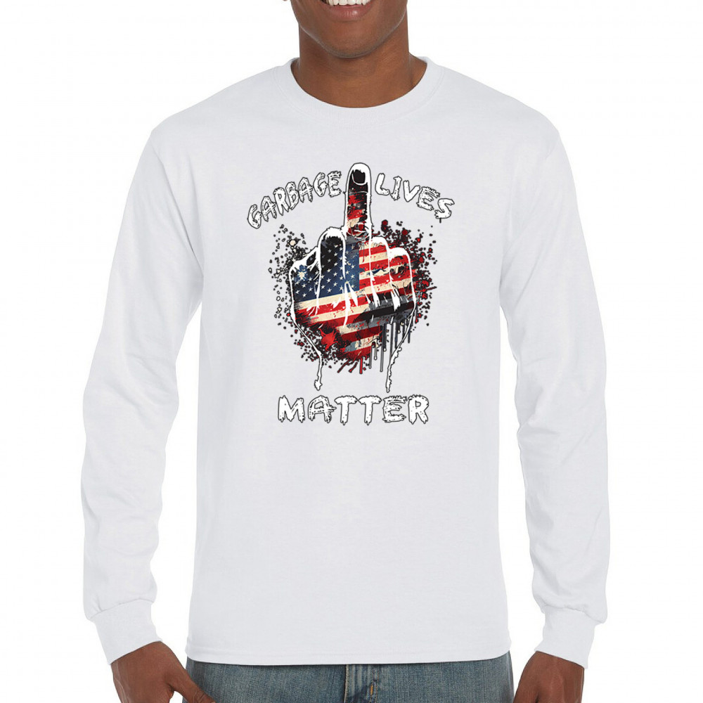 The "Garbage Lives Matter" design is a fearless expression of American values and pride. With the American flag as its centerpiece, this bold and patriotic design speaks volumes to Trump supporters, conservatives, and those who believe in the people's mandate. Join the fight for America First, never surrender, and celebrate the Red Wave movement with this striking statement piece.