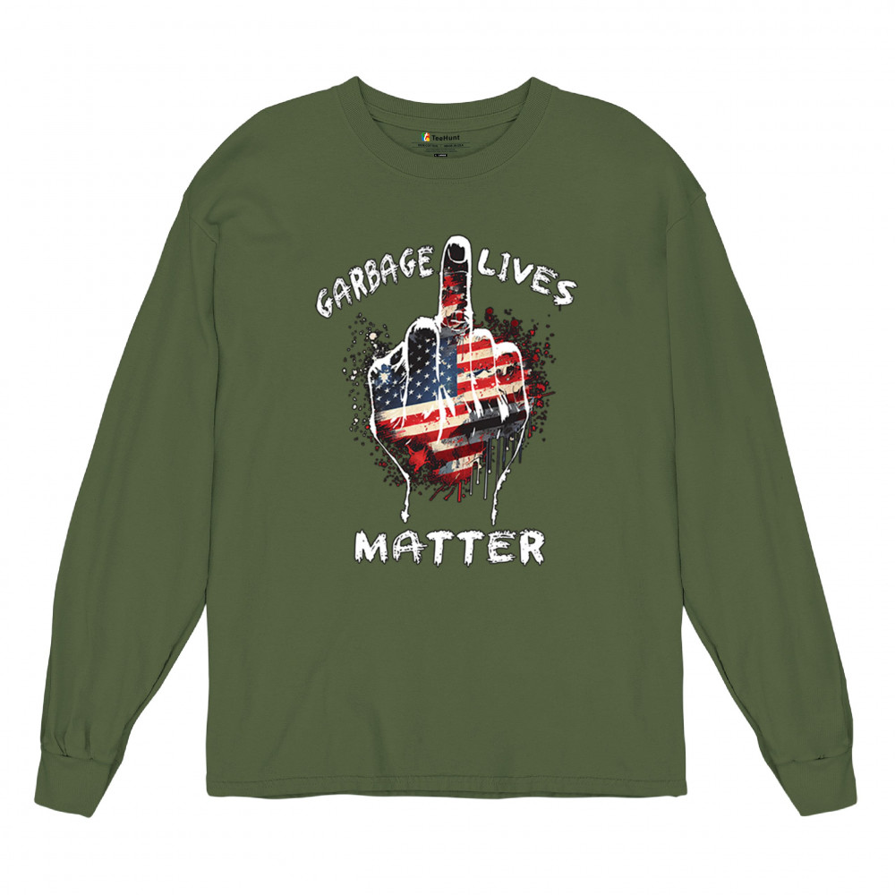 Bold "Garbage Lives Matter" design with the American flag. Perfect for Trump supporters, conservatives, and patriots celebrating resilience and victory.