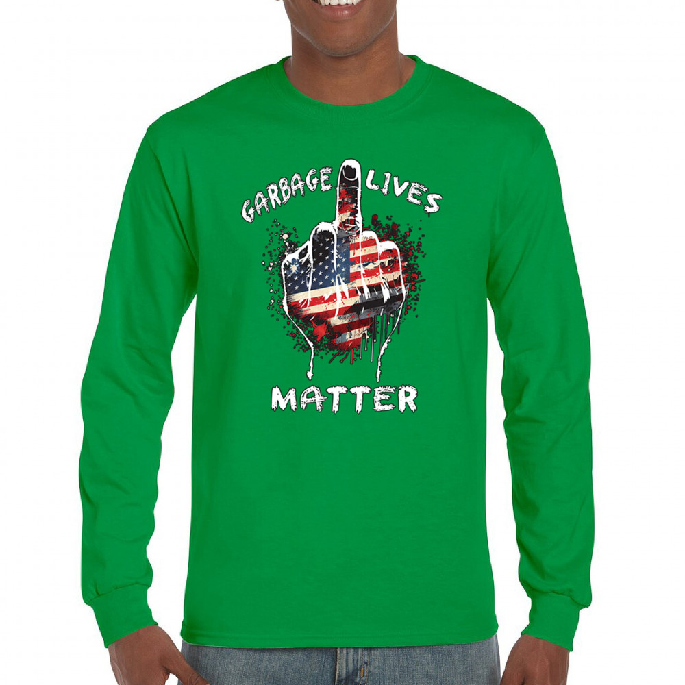 The "Garbage Lives Matter" design is a fearless expression of American values and pride. With the American flag as its centerpiece, this bold and patriotic design speaks volumes to Trump supporters, conservatives, and those who believe in the people's mandate. Join the fight for America First, never surrender, and celebrate the Red Wave movement with this striking statement piece.