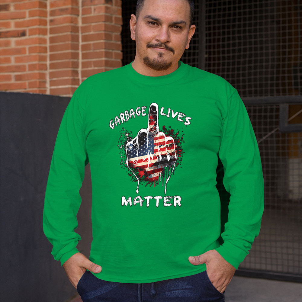 Bold "Garbage Lives Matter" design with the American flag. Perfect for Trump supporters, conservatives, and patriots celebrating resilience and victory.