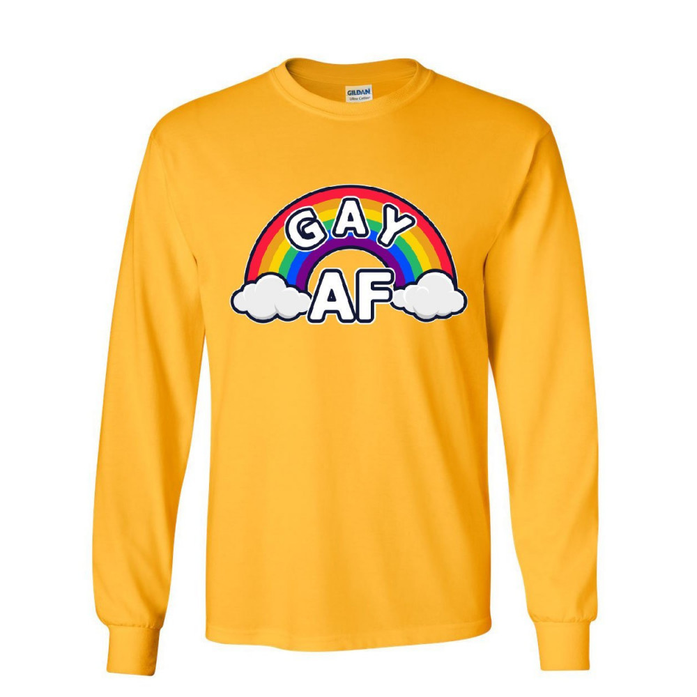 GAY AF RAINBOW gay af long sleeve t-shirt rainbow flag lgbtq equal rights pride love wins tee yellow