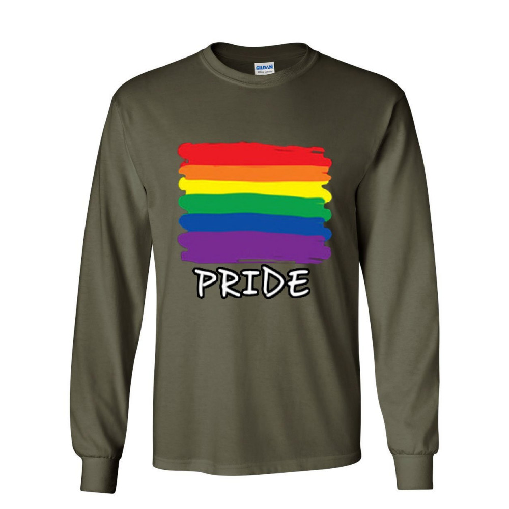 GAY PRIDE long sleeve t-shirt rainbow flag lgbt marriage love wins tee military green