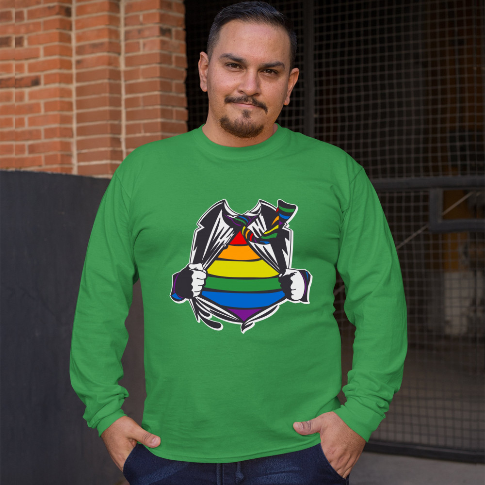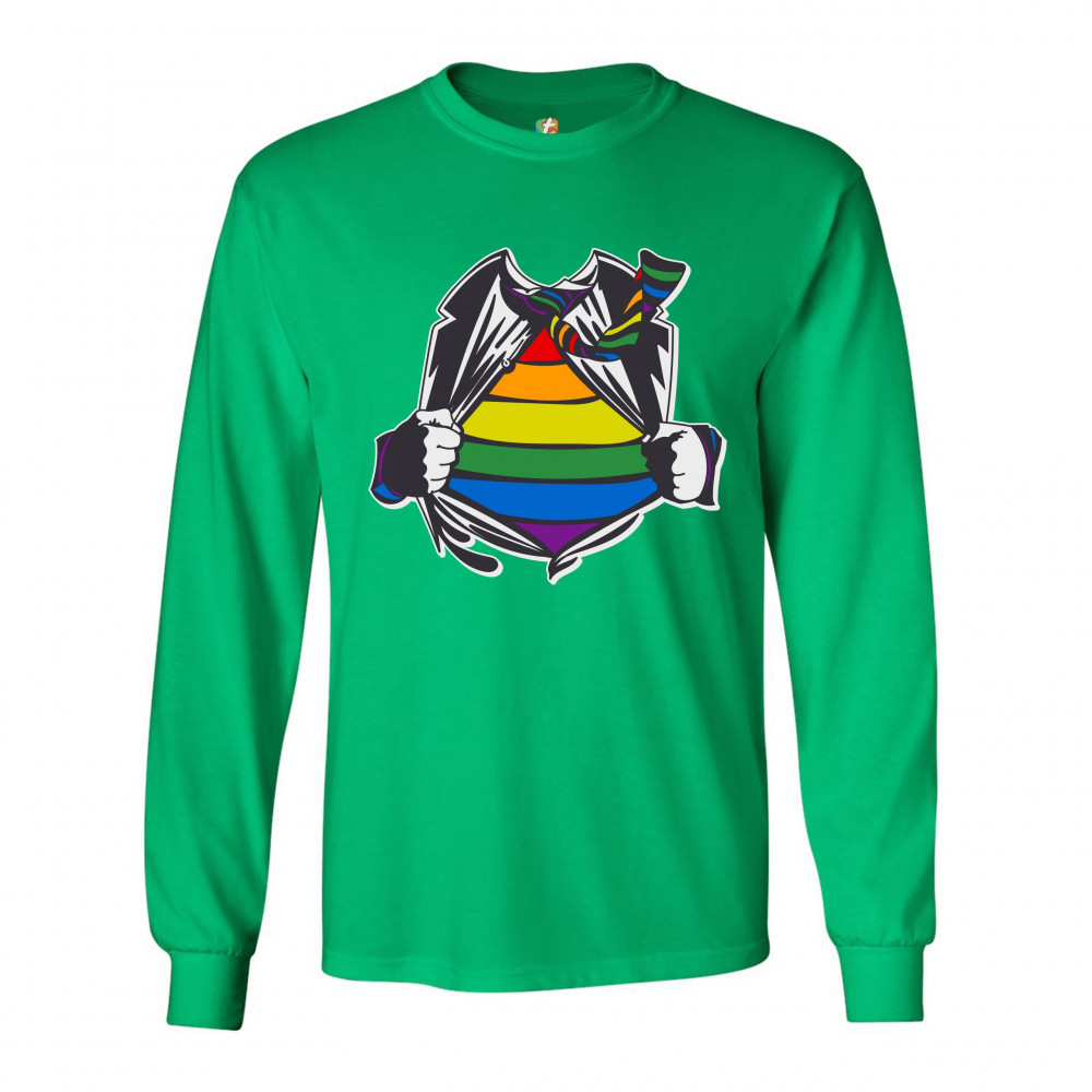 GAY SUPERHERO PARODY long sleeve t-shirt lesbian bi transgender pride rainbow green