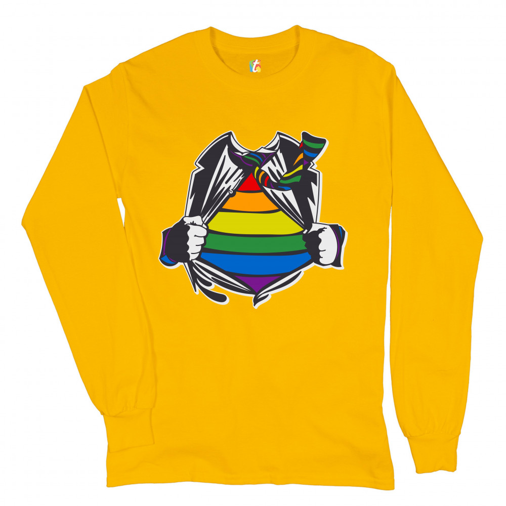 GAY SUPERHERO PARODY long sleeve t-shirt lesbian bi transgender pride rainbow yellow