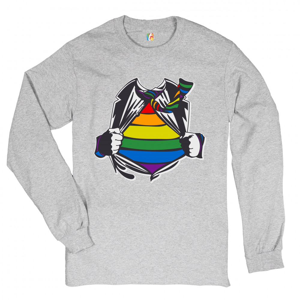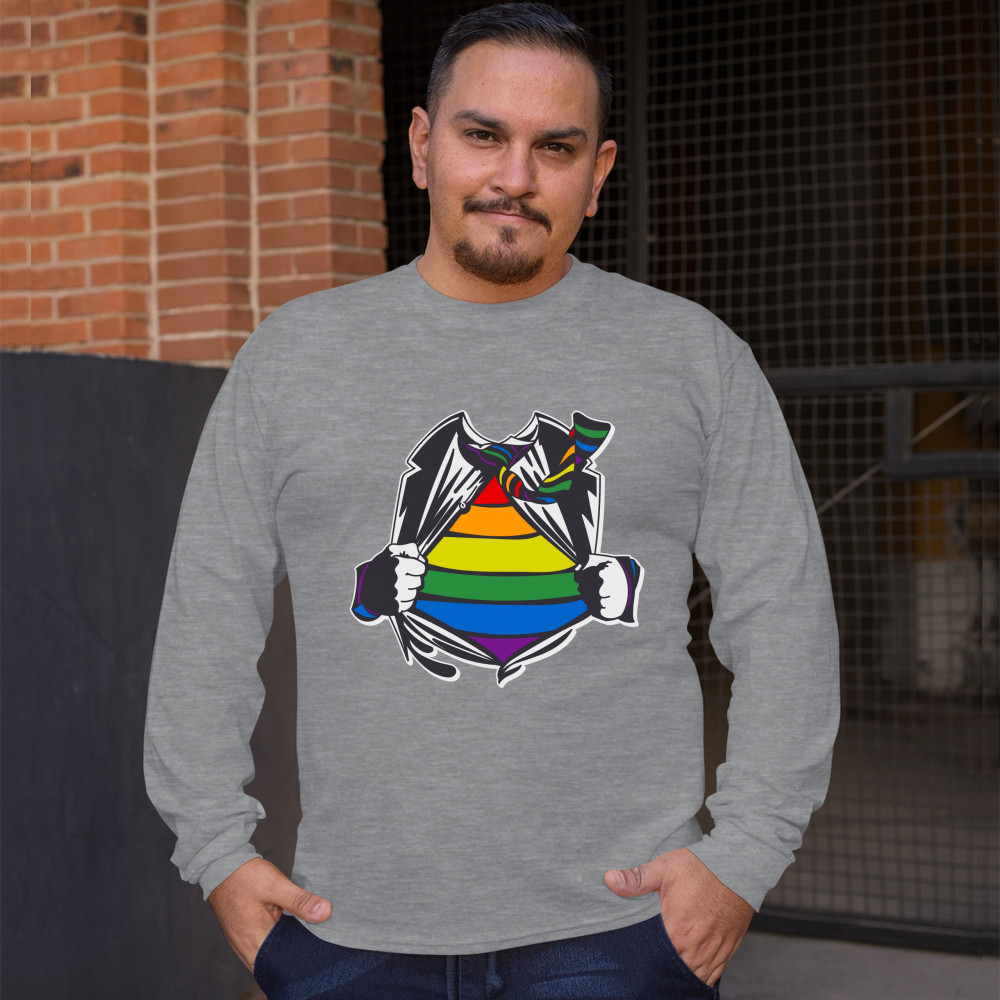 GAY SUPERHERO PARODY long sleeve t-shirt lesbian bi transgender pride rainbow gray