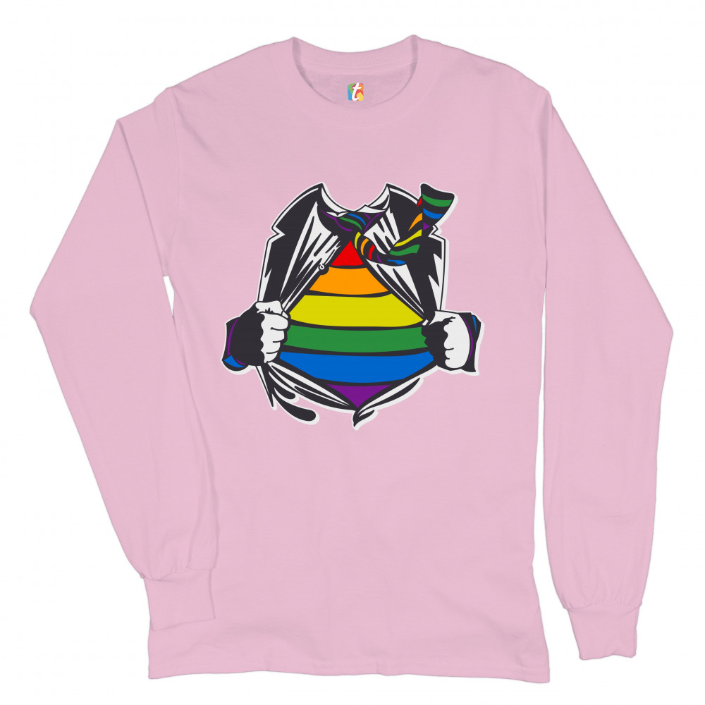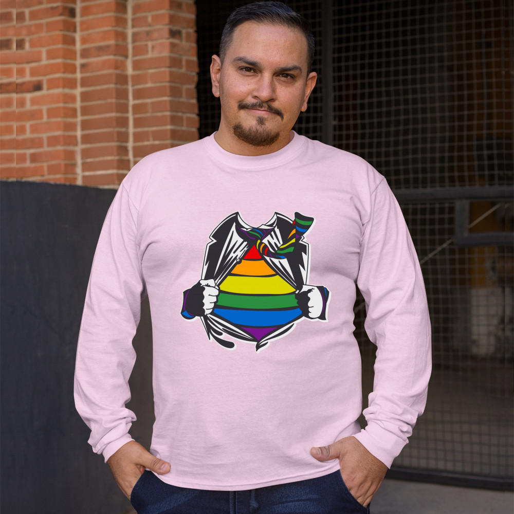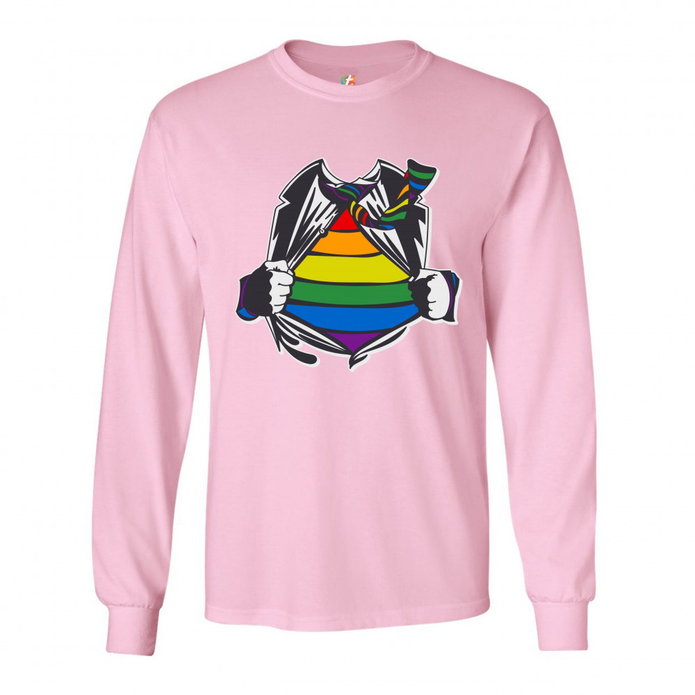 GAY SUPERHERO PARODY long sleeve t-shirt lesbian bi transgender pride rainbow pink