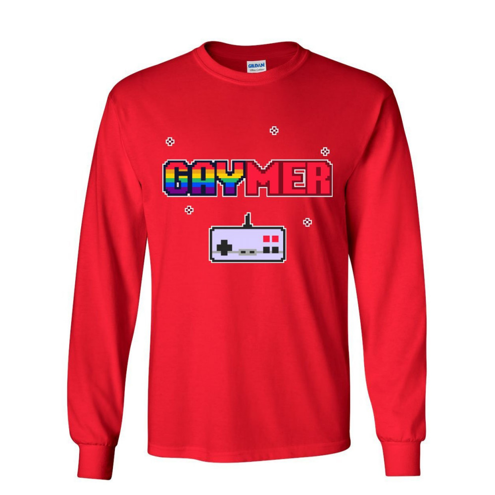 QUEER GAYMER CONTROLLER gaymer long sleeve t-shirt lgbt queer rainbow gay gaming console controller tee red