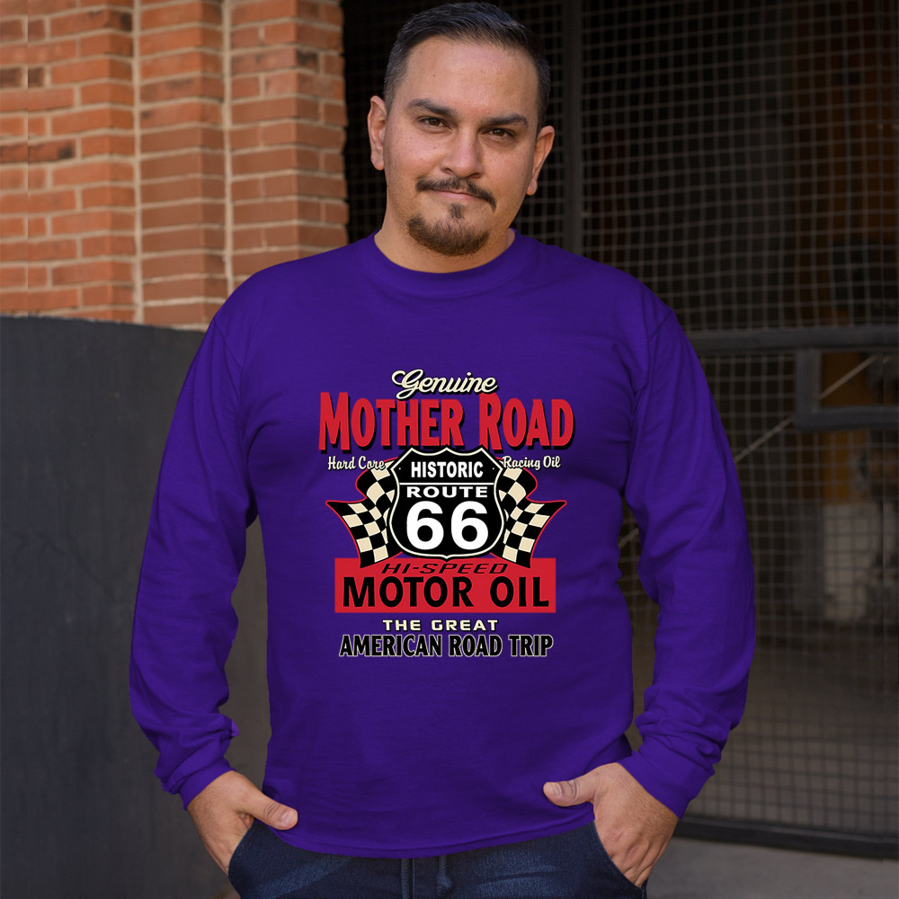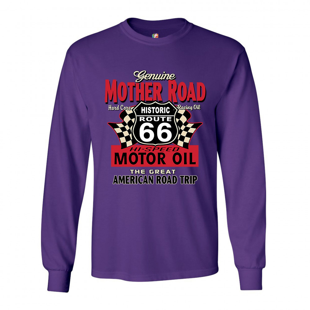 GENUINE MOTHER ROAD HISTORIC ROUTE 66 long sleeve t-shirt american road trip purple