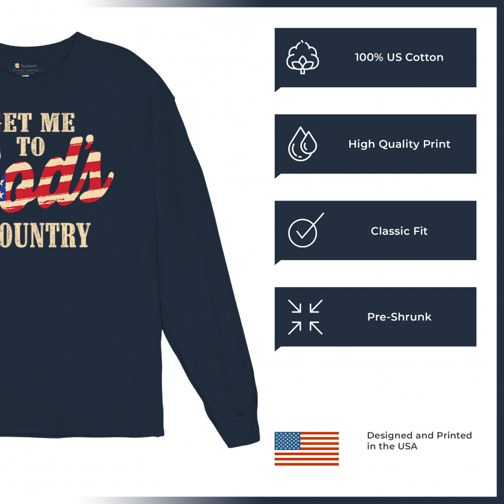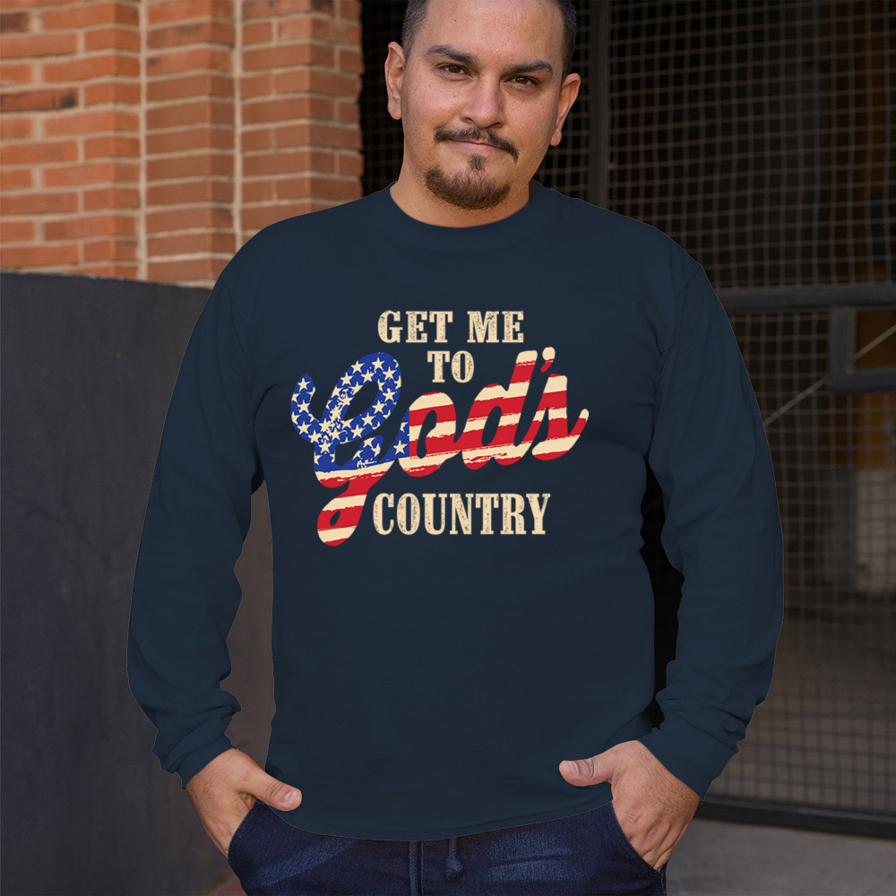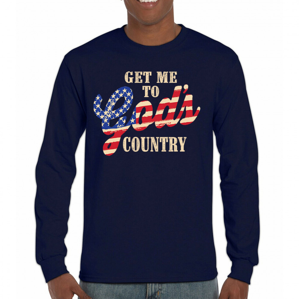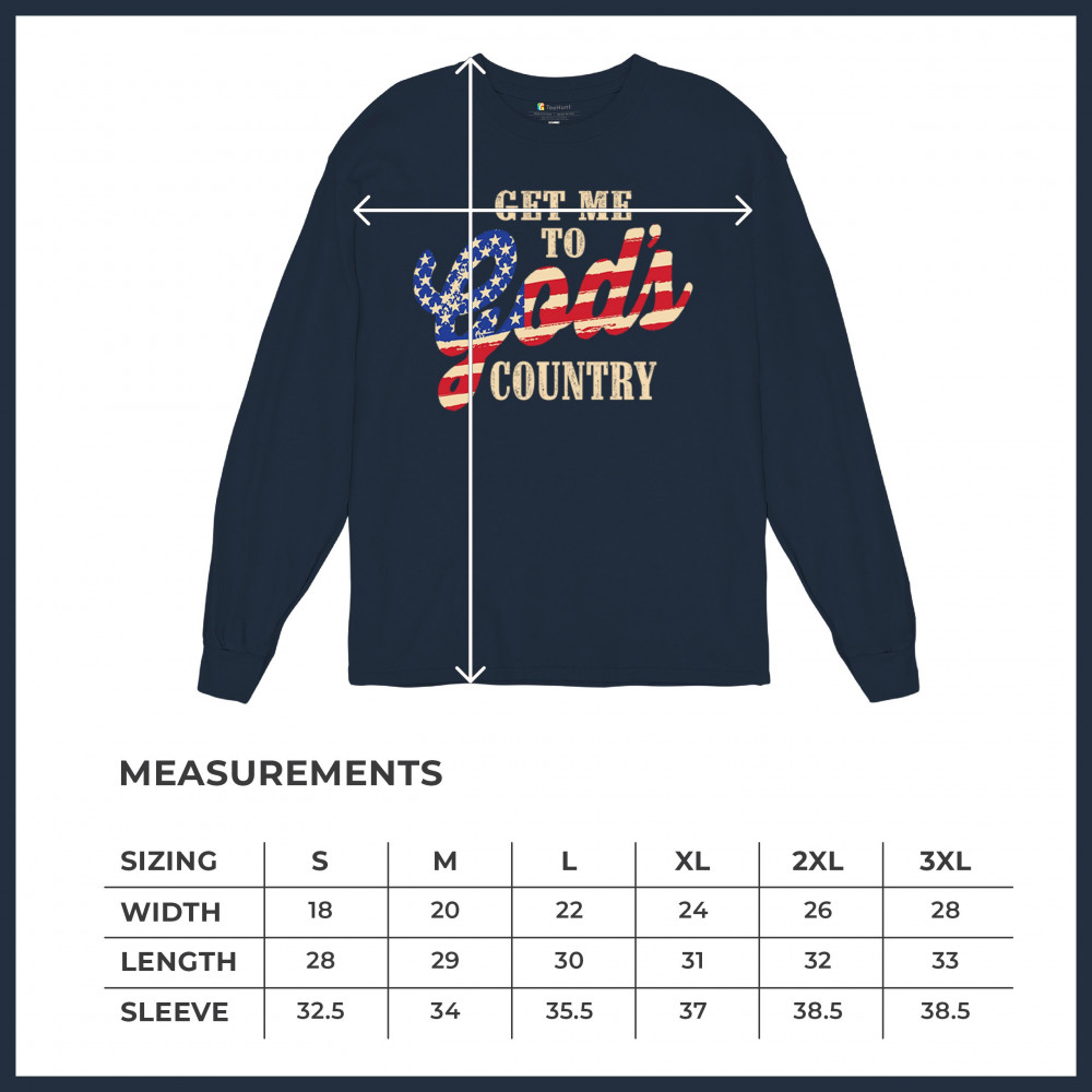 Bold patriotic faith shirt featuring USA flag text. Great for rural life, Christian pride, believers, and country-loving Americans.