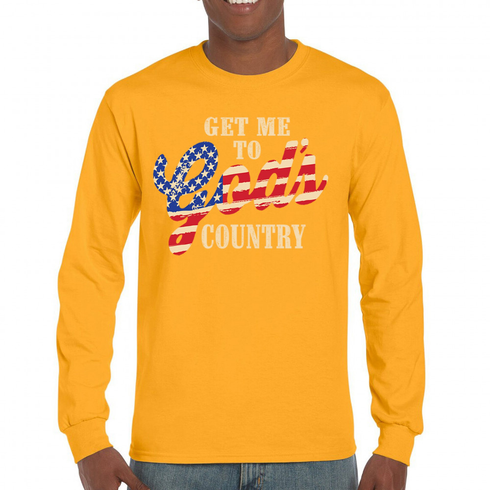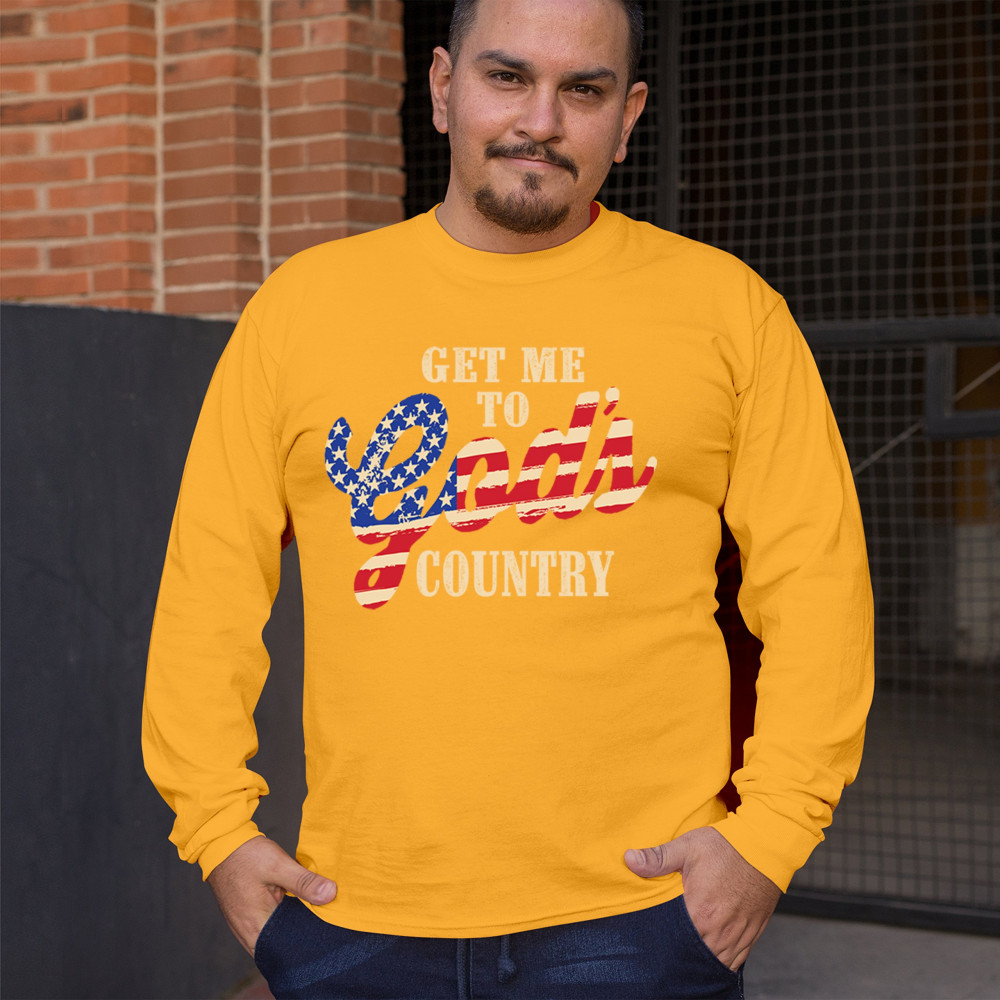 Bold patriotic faith shirt featuring USA flag text. Great for rural life, Christian pride, believers, and country-loving Americans.