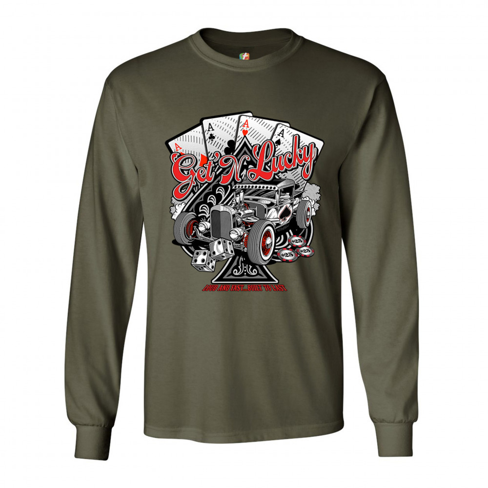 GET'N LUCKY HOT ROD long sleeve t-shirt ace of spades vintage drag racing military green