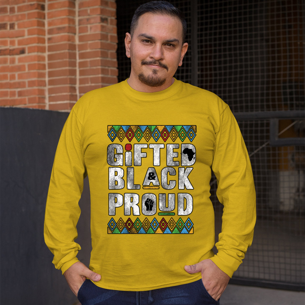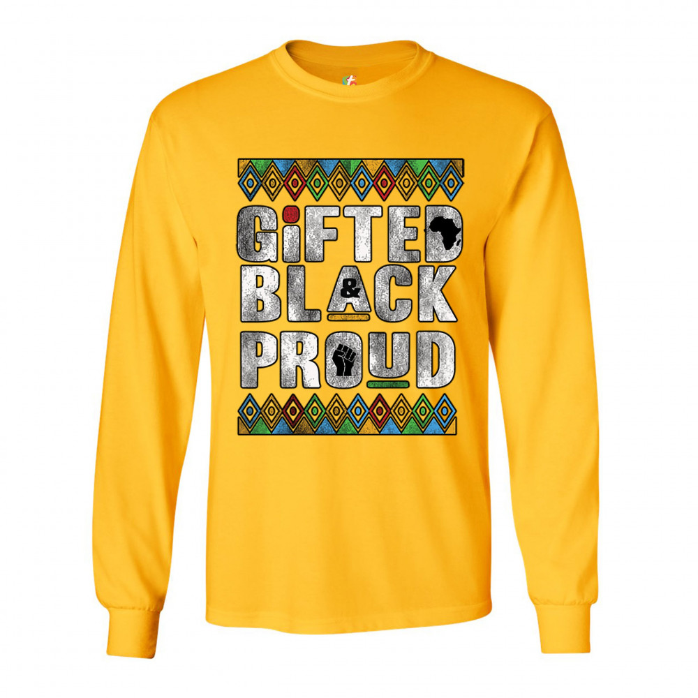 GIFTED BLACK & PROUD long sleeve t-shirt african american black lives matter yellow