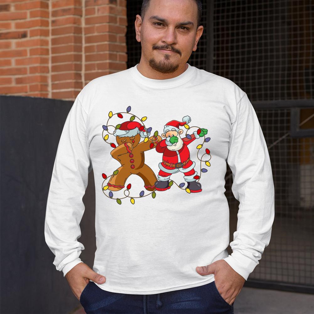 GINGERBREAD MAN AND SANTA CLAUS DAB DANCE long sleeve t-shirt merry christmas white