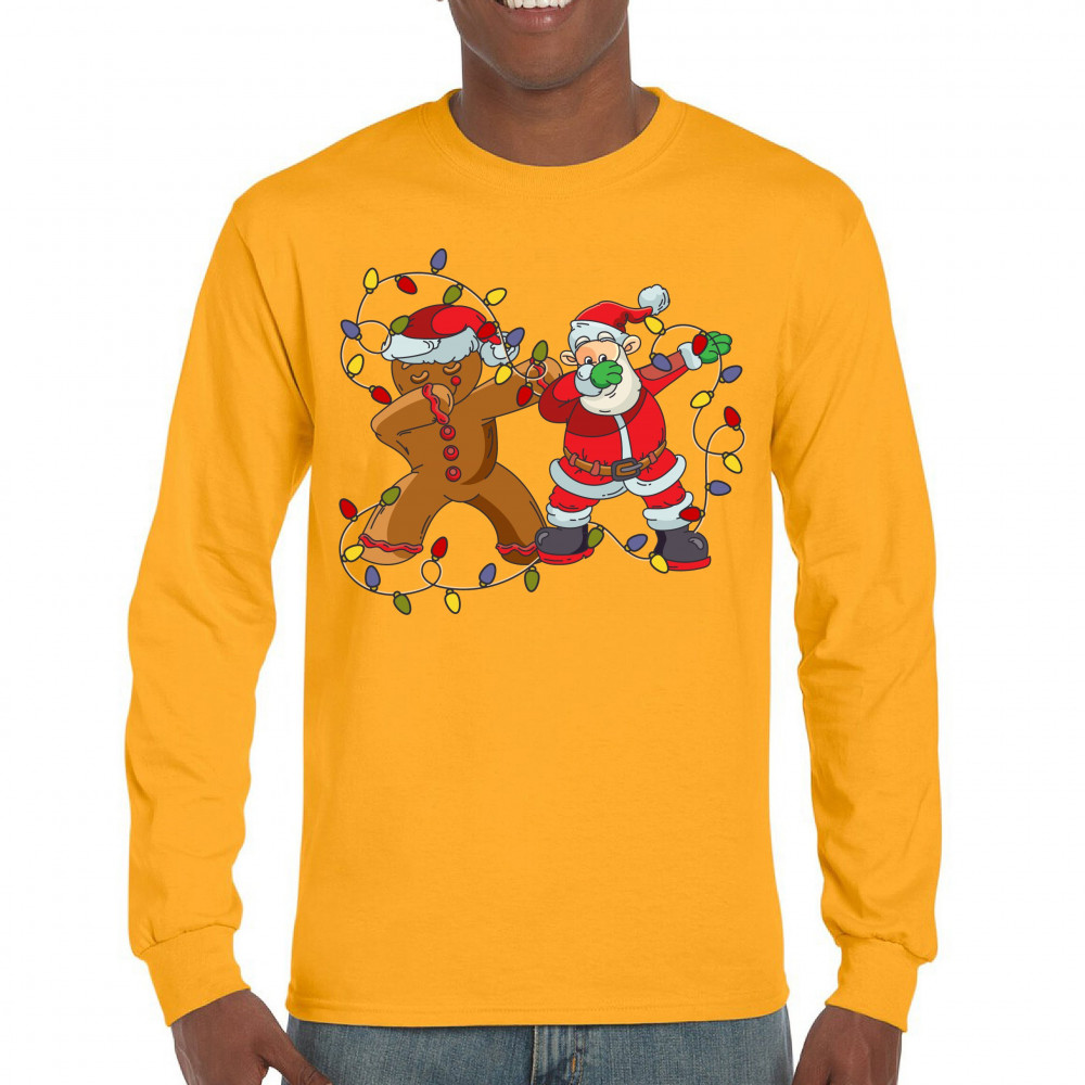 GINGERBREAD MAN AND SANTA CLAUS DAB DANCE long sleeve t-shirt merry christmas yellow