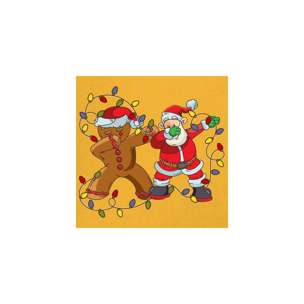 A funny print featuring a gingerbread man and Santa Claus dab dancing while surrounded by Christmas lights. Amazing choice to make people smile and spread positive vibes on Christmas Eve.