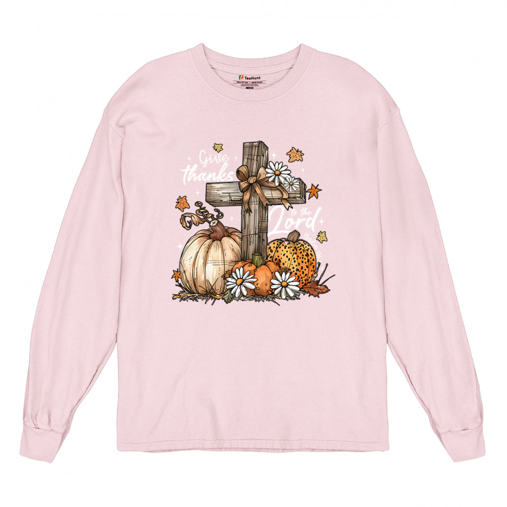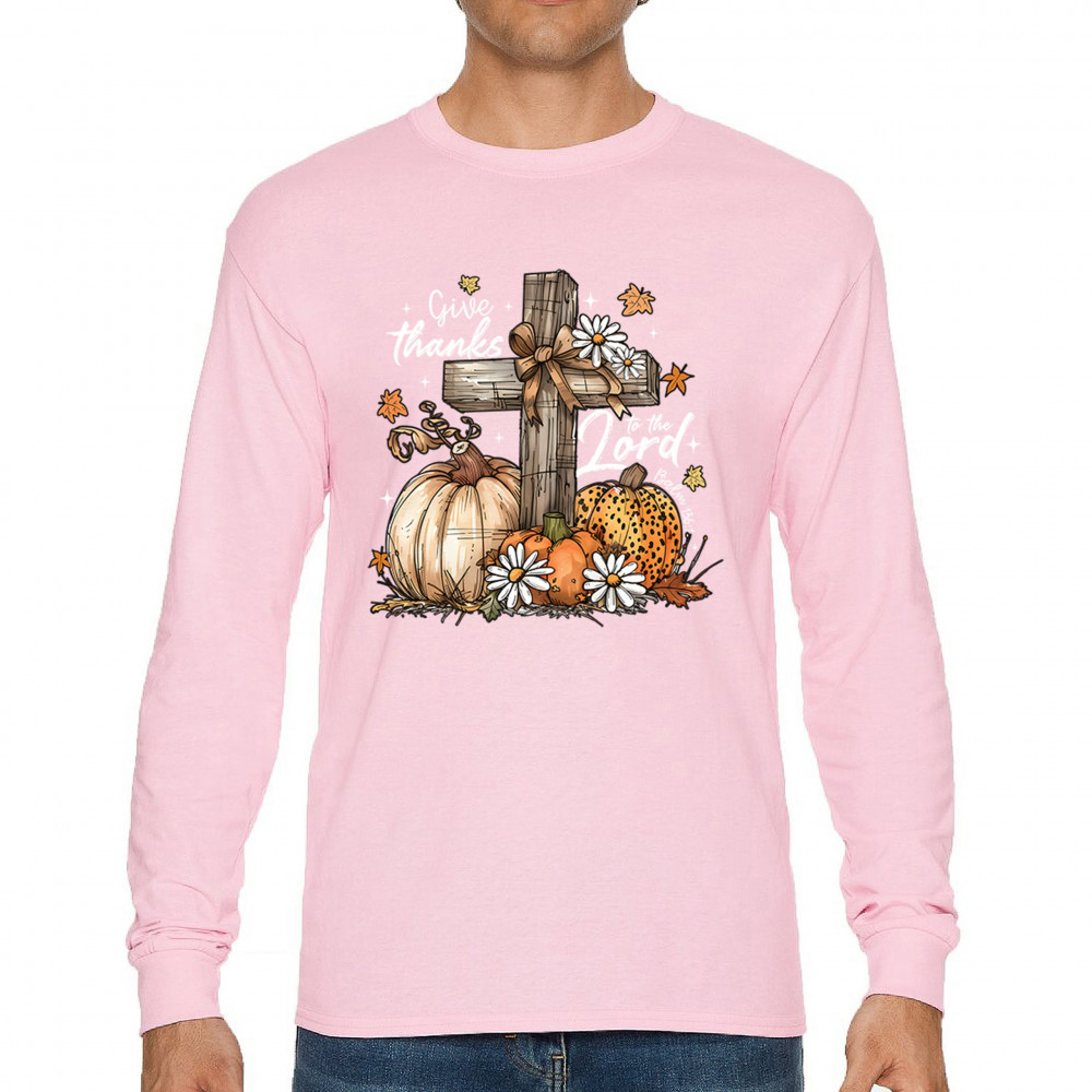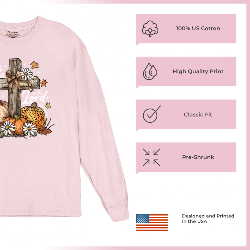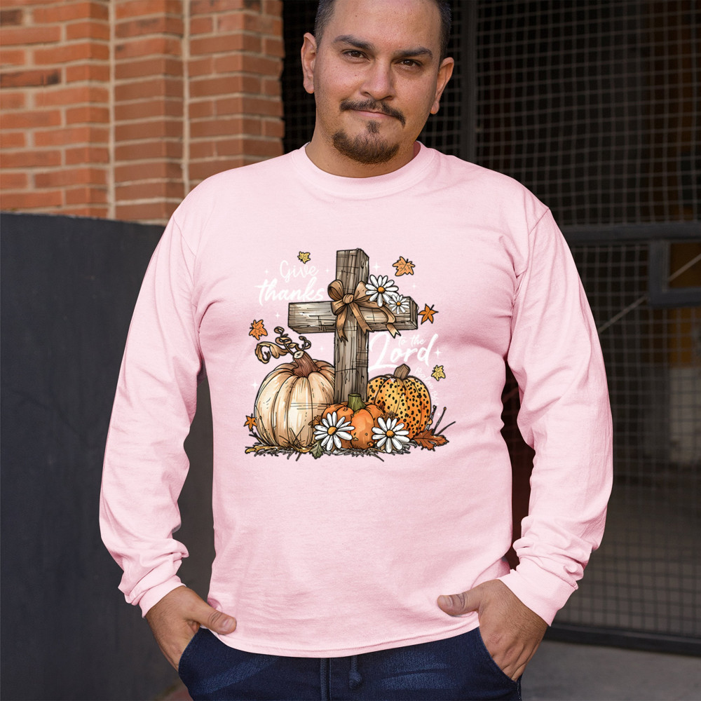 Thanksgiving design with pumpkins, daisies, and rustic cross. Perfect for Turkey Day, faithful family gatherings, and fall festival blessings.