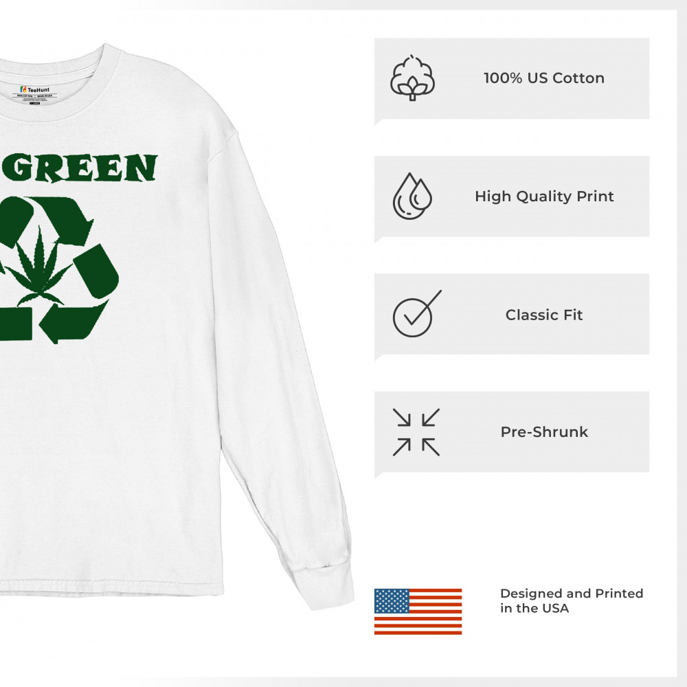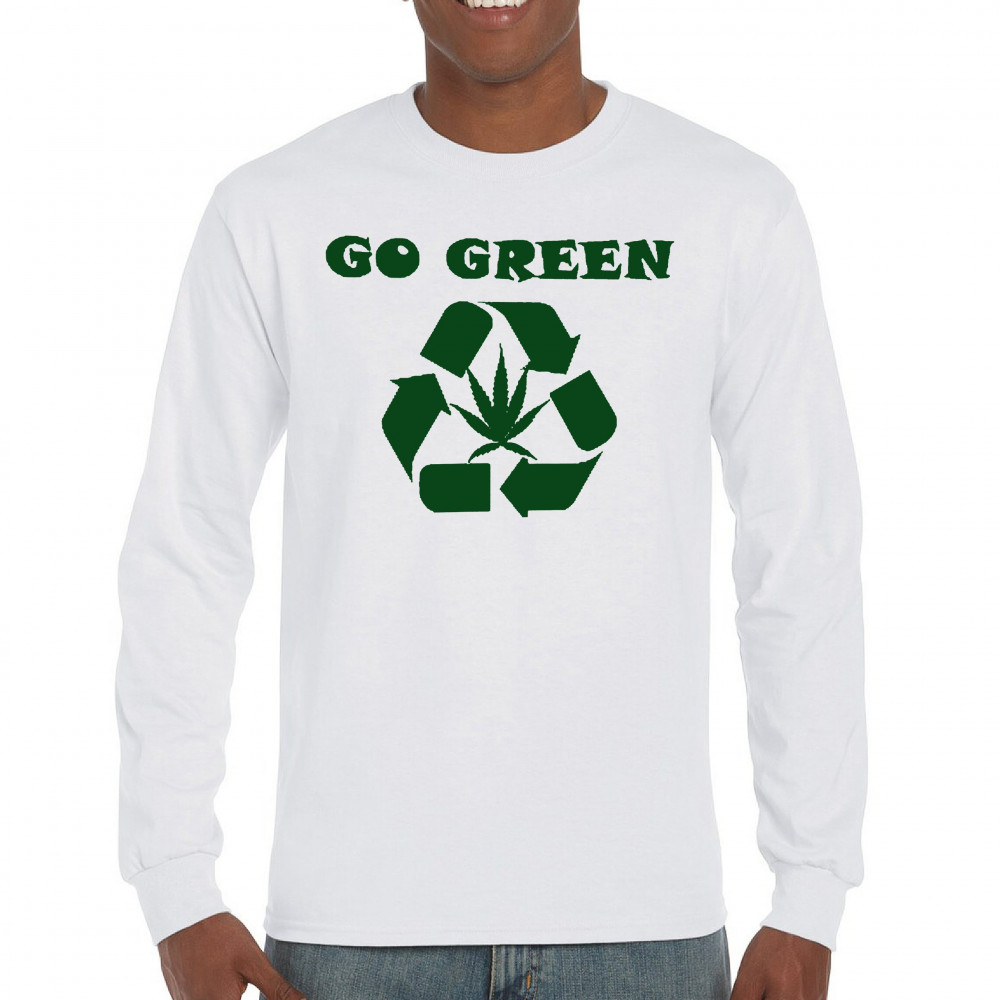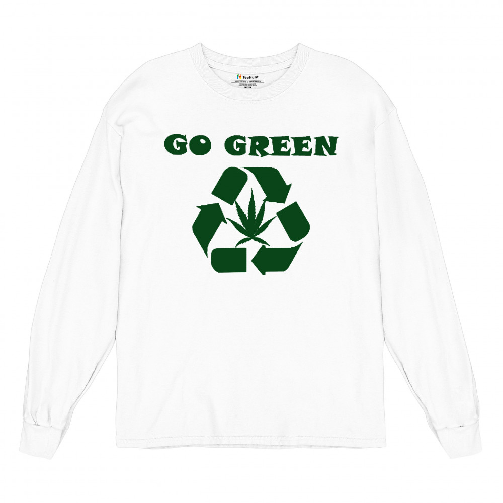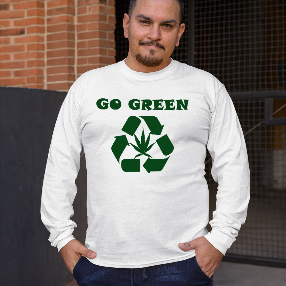 "Go Green" design combining a recycling symbol with a cannabis leaf. Perfect for those who love Mary Jane, sustainable living, and stoned humor.
