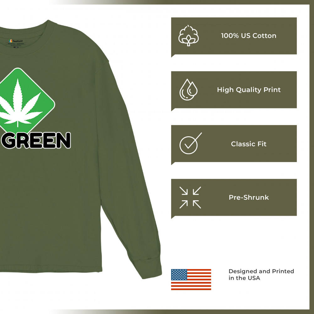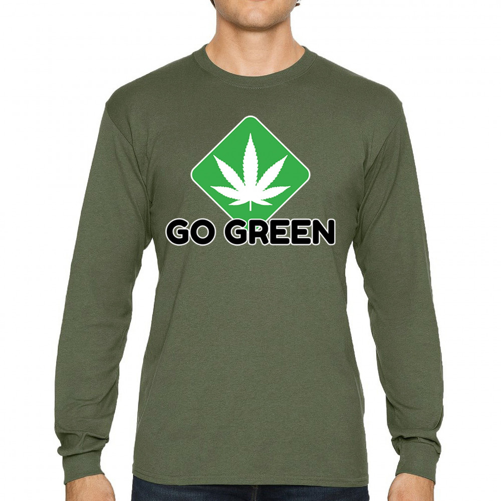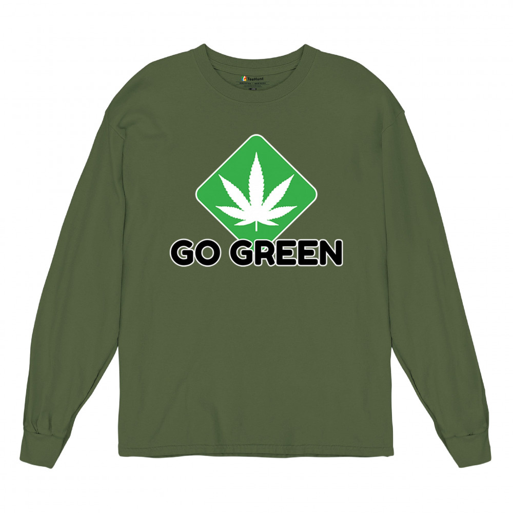 Bold Go Green design with cannabis leaf icon. Perfect for 420 fans, eco-conscious wearers, stoners, and marijuana advocates.