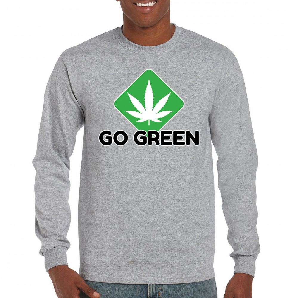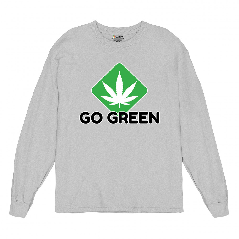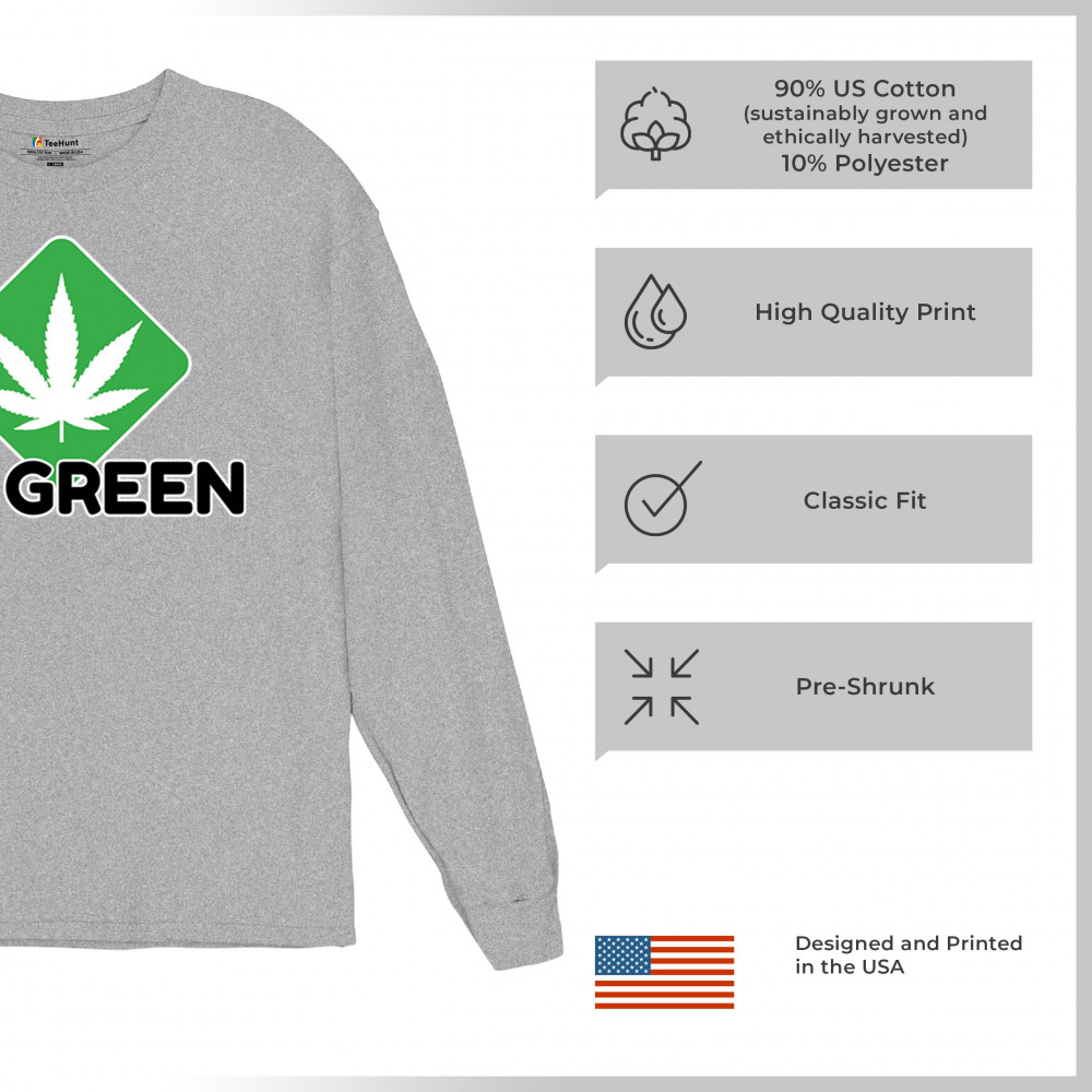 Bold Go Green design with cannabis leaf icon. Perfect for 420 fans, eco-conscious wearers, stoners, and marijuana advocates.